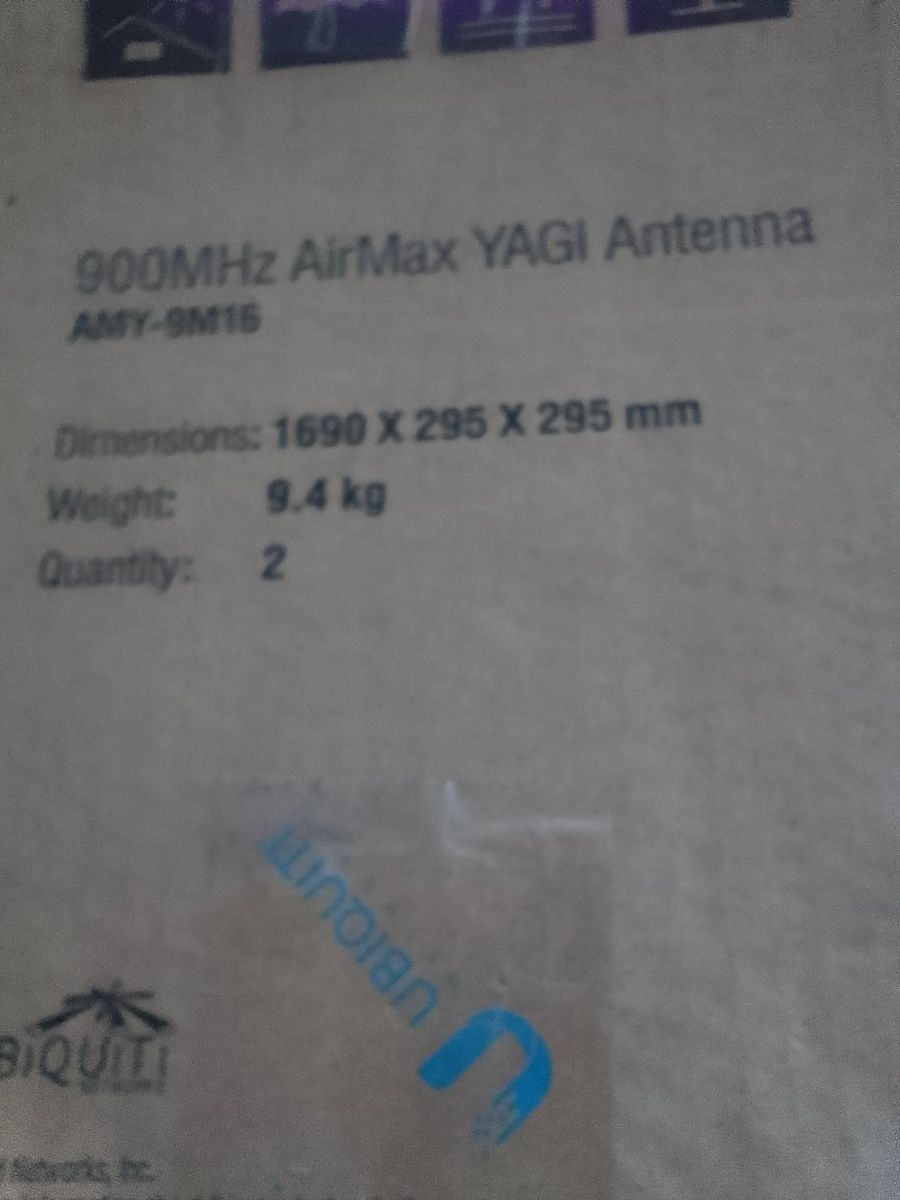 Ubiquiti Networks - AMY-9M16X2 - Airmax 2 pack 900 MHz dual pol highgain array 16 dBi Yagi MIMO Antenna, 20+km, 90+Mbps real TCP/IP, 2x2 MIMO PtP bridging or 2x2 MIMO PtMP BaseStation solutions.