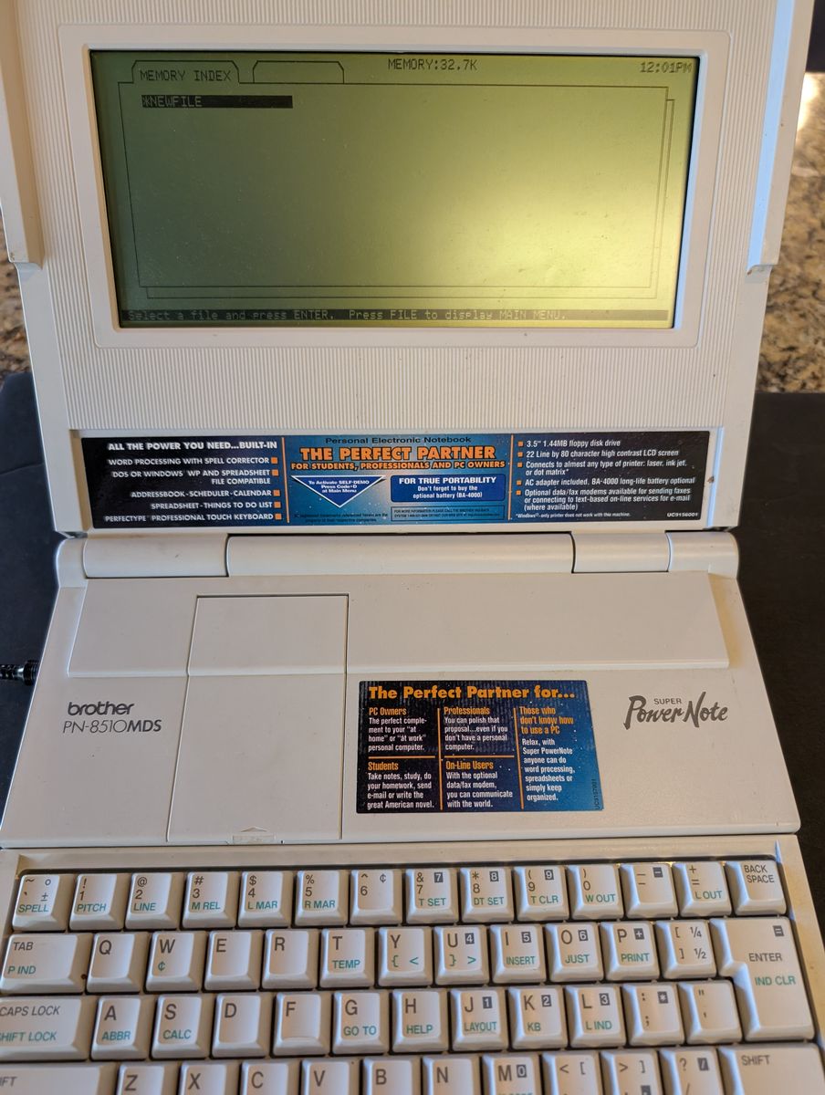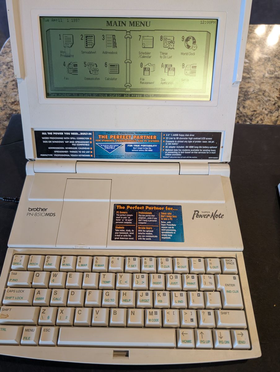 VenmoThe Vintage Brother Super Powernote PN-8510MDS Laptop with Power Supply is a rare find for collectors and enthusiasts of vintage computing. This laptop, manufactured in the United States, features a 3.5'' floppy drive and inputs for serial and parallel connections. It belongs to the Super Powernote series by Brother, known for its reliability and durability. I am selling the laptop, owners manual, power supply, and 3.5 floppy disks, making it a complete and ready-to-use piece of computing history for those interested in retro technology. The unit powers up and works. Cross Posted. Pick up only in Clinton, Utah.