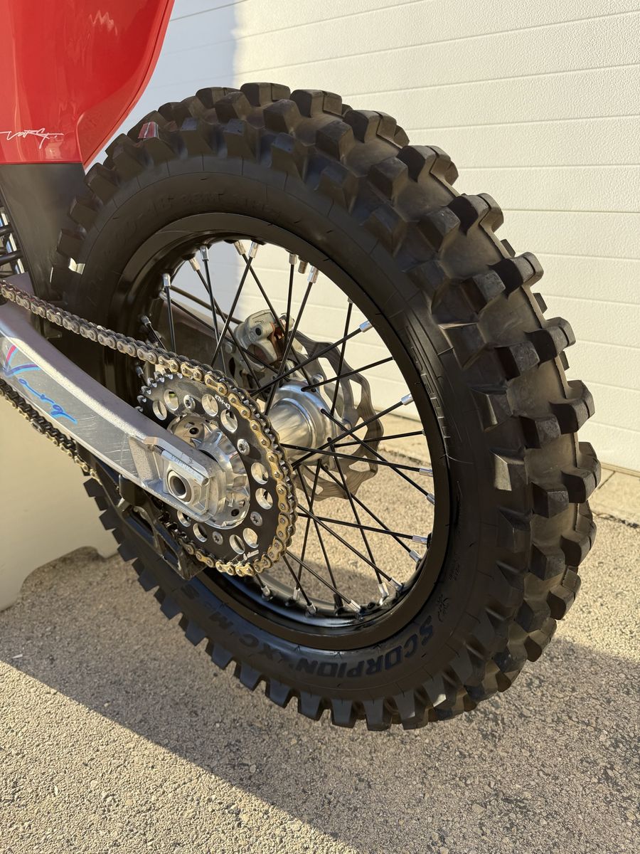 Bike is pristine and immaculate. 5 hours and 25 minutes on it, barely 2 rides. Zero problems. Has kick stand and bike stand. Upgraded rear sprocket.