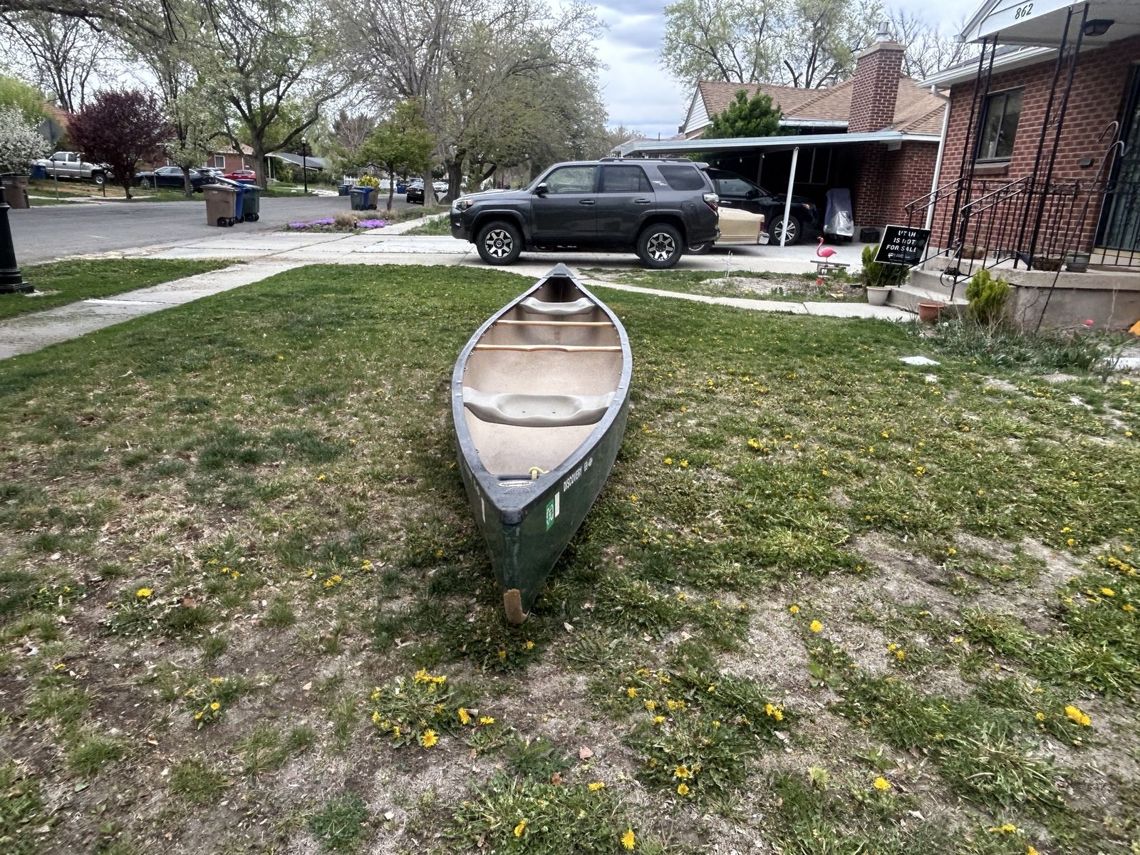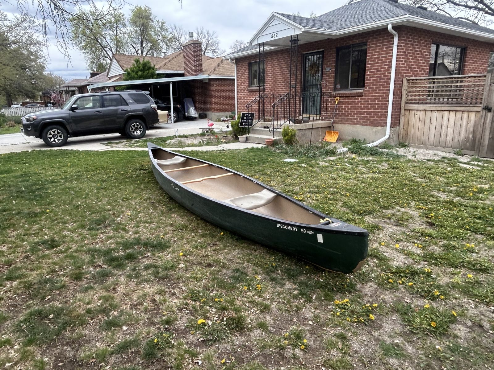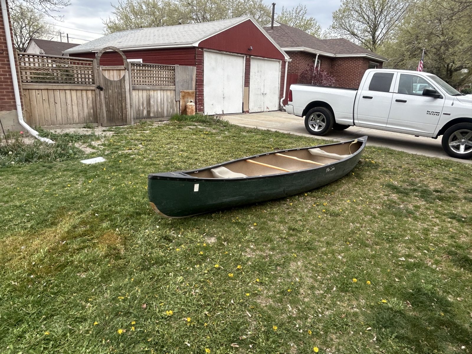 VenmoThis canoe is a great, stable canoe suited to day trips, multi day floats, fishing, and waterfowl hunting. It can handle still and swift water. The fiber glass patches on the bow and stern were places to provide extra protection against bumping into rocks. Aside from a few scratches it is in great shape! Comes with two paddles. Dimensions are 16’9” long, 37” wide.