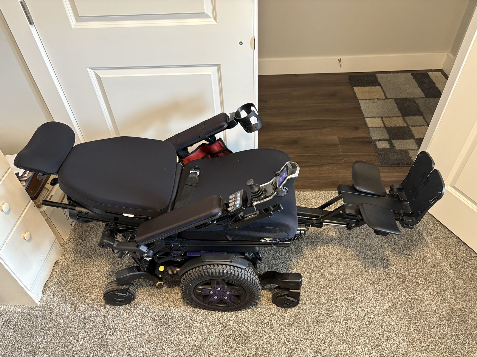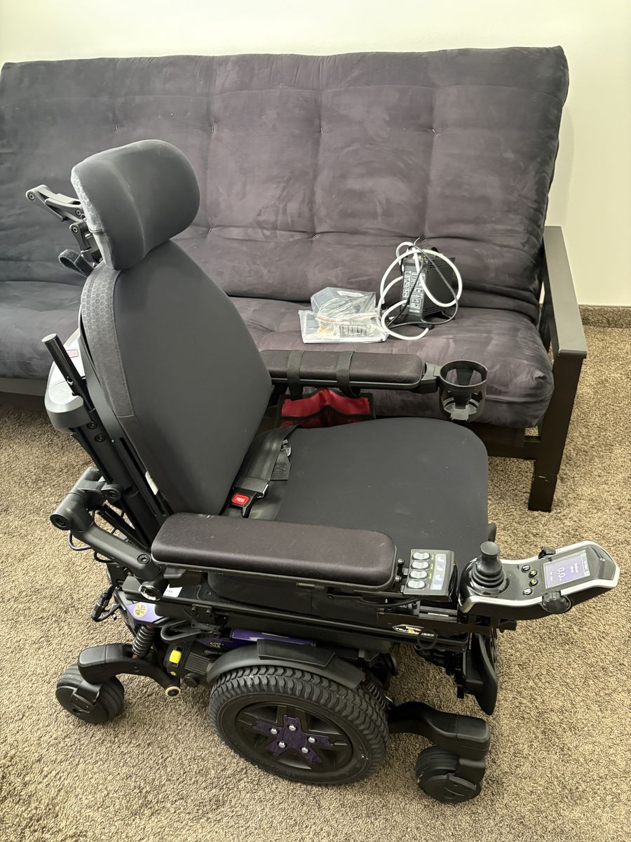 VenmoPower Chair with tilt and recline capability. In excellent condition. Used for 3 months. Only 50 miles on it. Seat is 16" at the front and 15" at the back. Chair is 23" wide from outside arm rest to outside arm rest. Approx. $20,000 new.