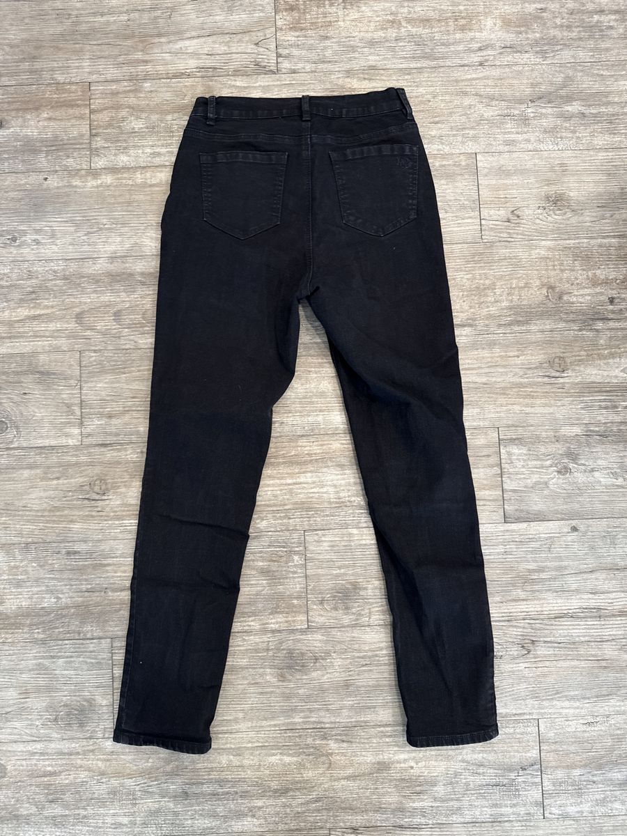 ZelleStretchy black jeans with front and back pockets and a silver button. Barely worn. Size 8 Tall