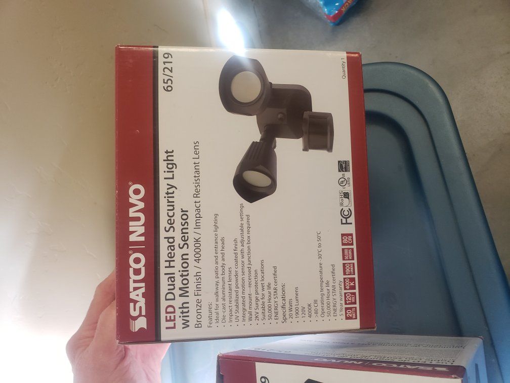 1900 lumens 20 watts 3000 Kelvin led security floodlight fixture with motion sensor and photocell I have 2 $15 each or 2 for $20