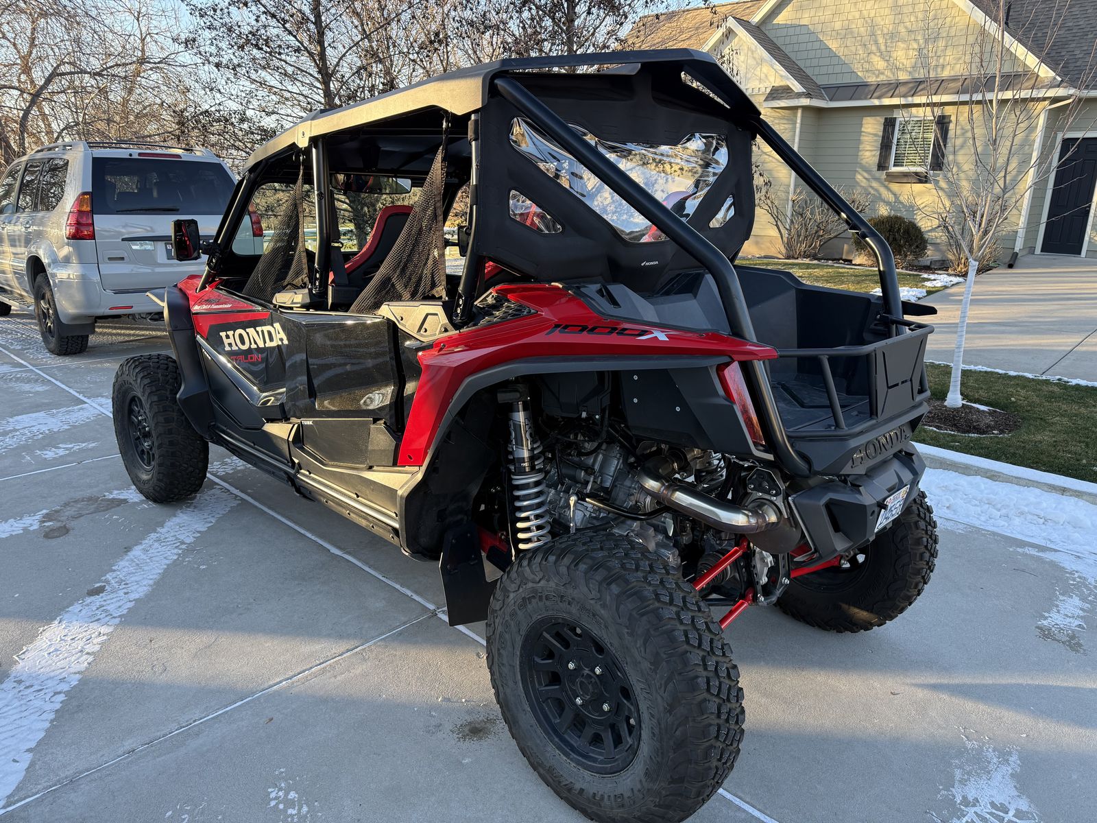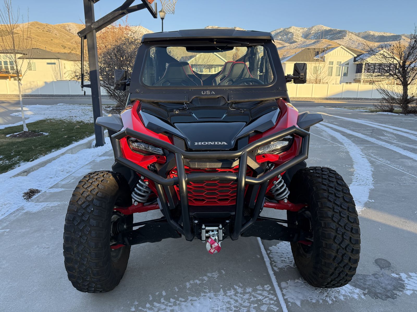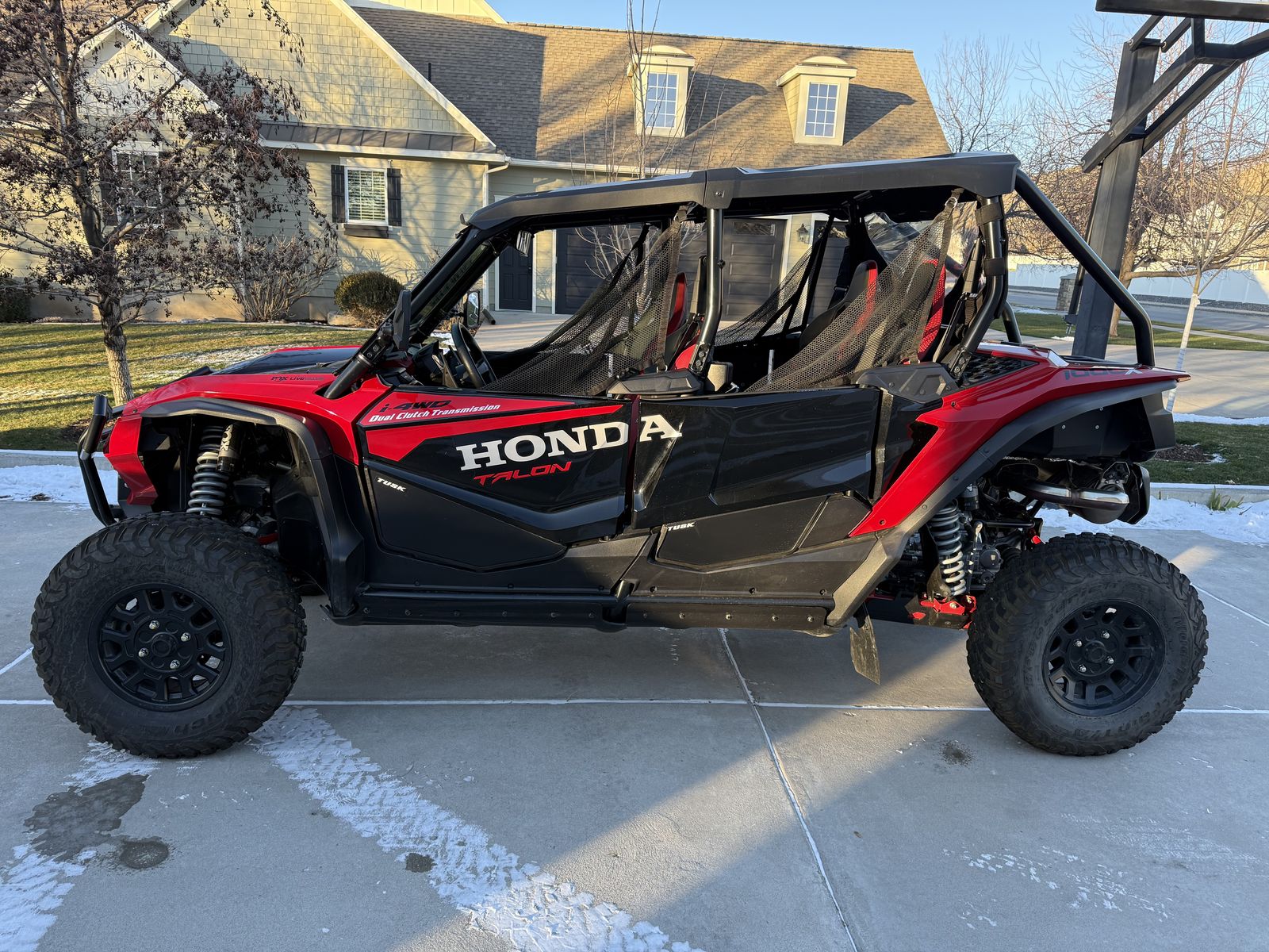 2022 Honda Talon 1000x-4 live valve loaded with launch mode!! 1038 miles. Warn winch. Street kit. BF Goodrich mud terrain tires. Honda front bumper. After market heavy duty skid plate, A arm guards, mud guards, shock guards, rear suspension guards, etc. Rear tailgate. Front USA glass windshield, rear windshield. After market lower door panels. Rear view mirror. Super clean!! Extended mud flaps included but not installed.