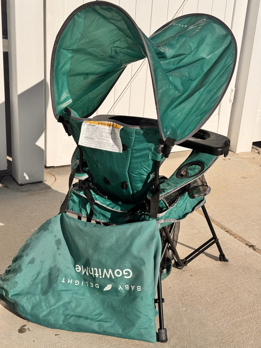 VenmoSelling a Baby Delight “Go With Me” portable high chair, great for camping, backyard BBQs, and travel.[babydelight +1] Chair includes the removable sun canopy, snack tray with cup holder, and 5‑point safety harness so your little one can sit securely at camp or on the sidelines.[babydelight +1] Fabric is indoor/outdoor polyester that wipes clean and the chair folds up like a camp chair to fit in the attached carry/storage bag.[youtube +2] Condition is used but functional; some light wear from normal use (see photos). Recommended for babies/toddlers who can sit up unassisted; always follow labeled weight and safety instructions on the chair.[babydelight +1] You’re welcome to test setup and folding before buying. Pickup in Layton.