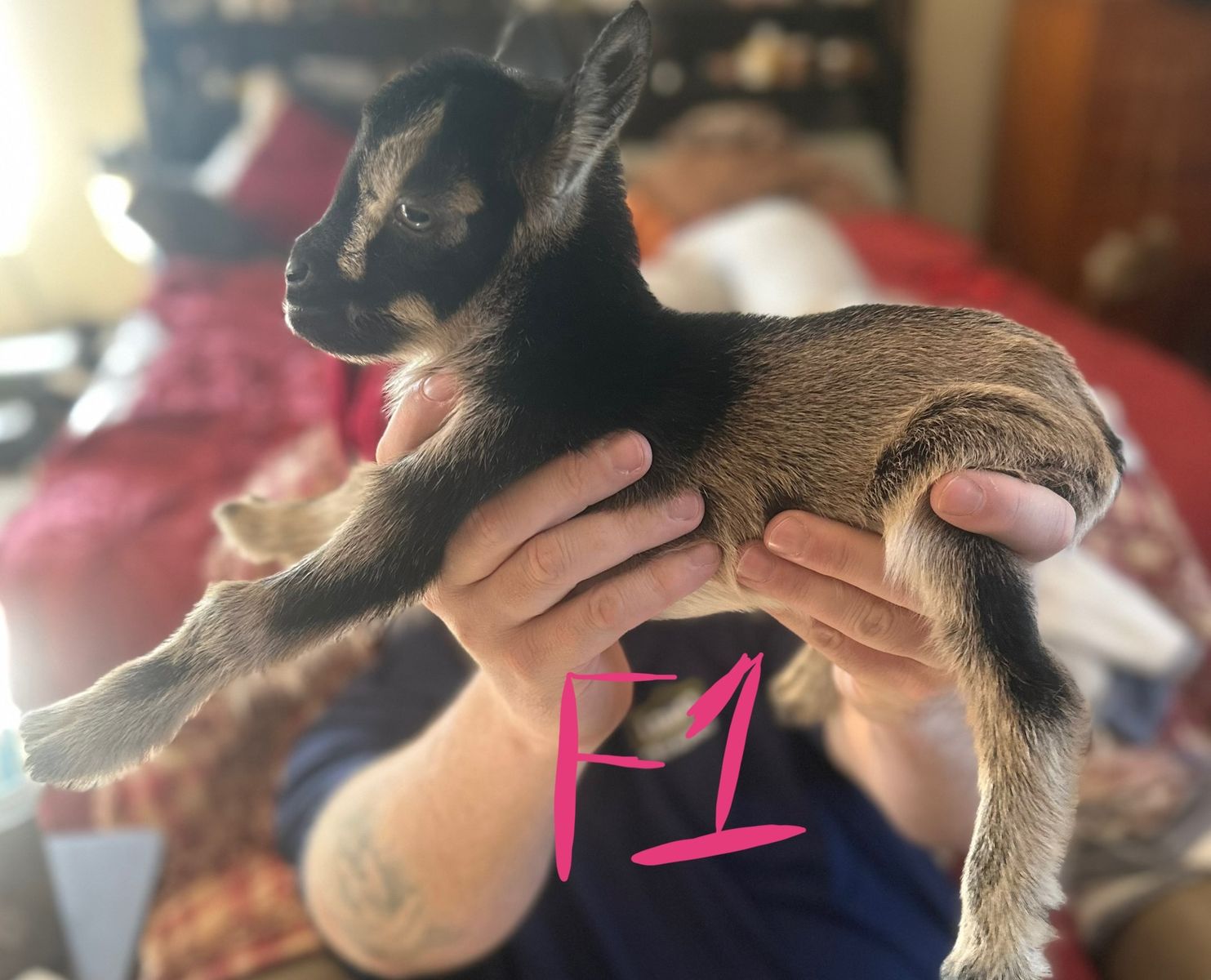 Born April 1st from Lilly Bell X Zaffereno both Nigerian Dwarfs.