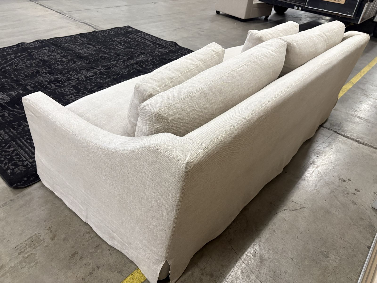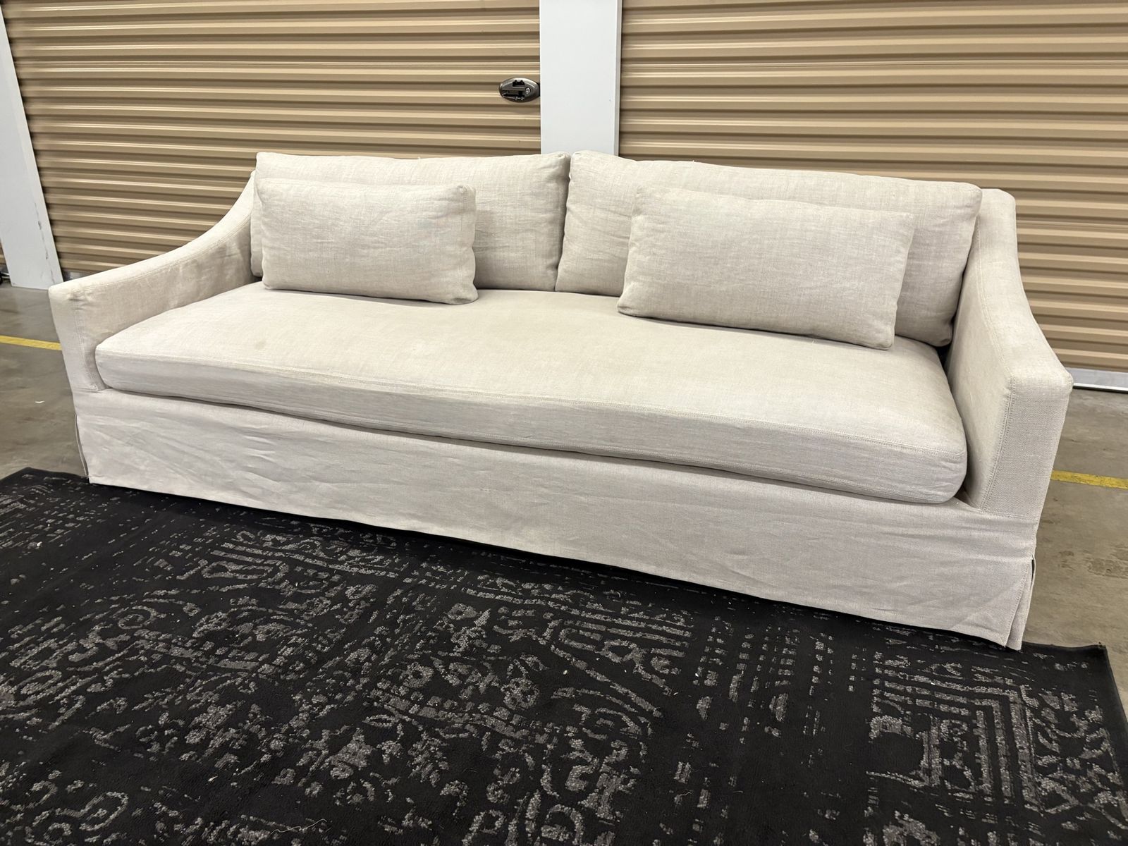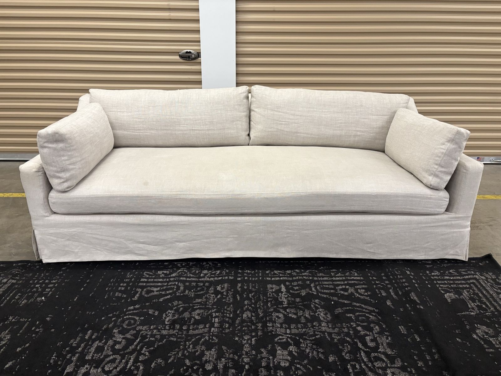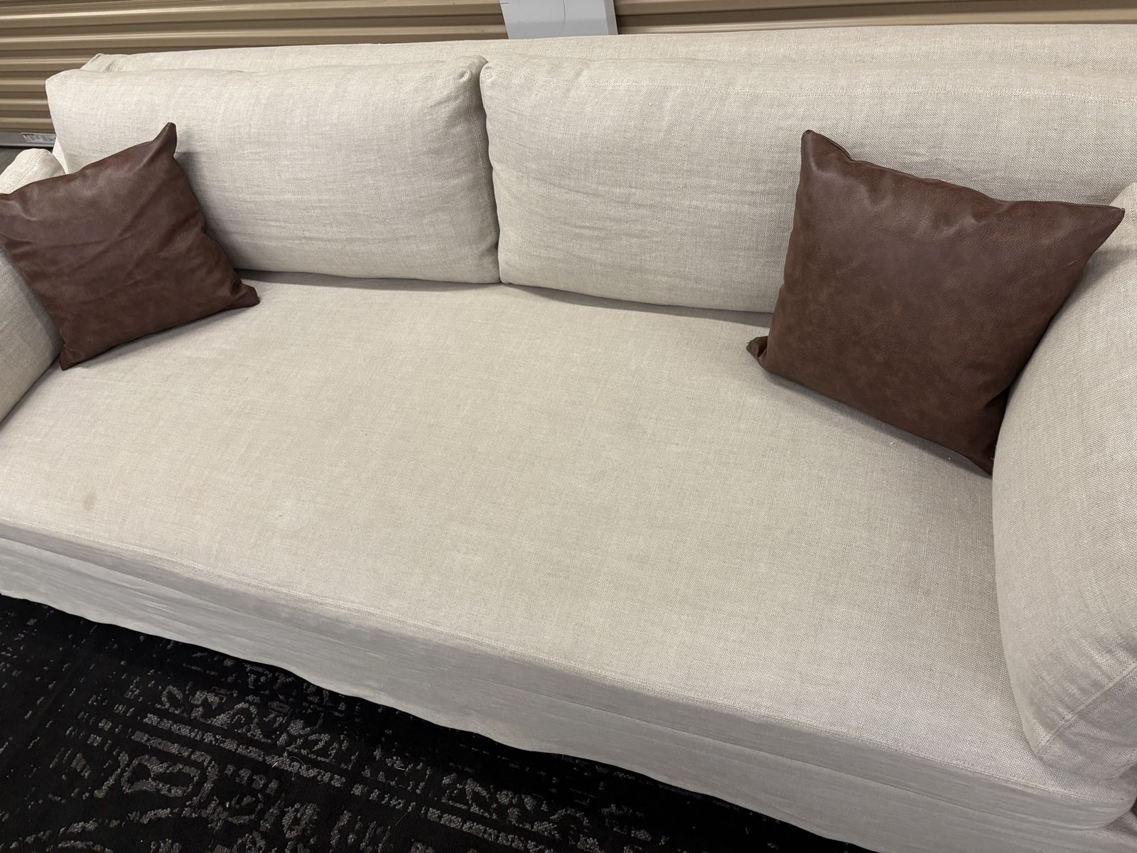 ‼️ Dimension: 96” x 42” deep RH slipcovered sofa comfortable, and oversized (96”). No rips or damage. Overall pretty clean. Seat cushion could use a light professional cleaning Covers are removable and can be professionally cleaned if desired.
