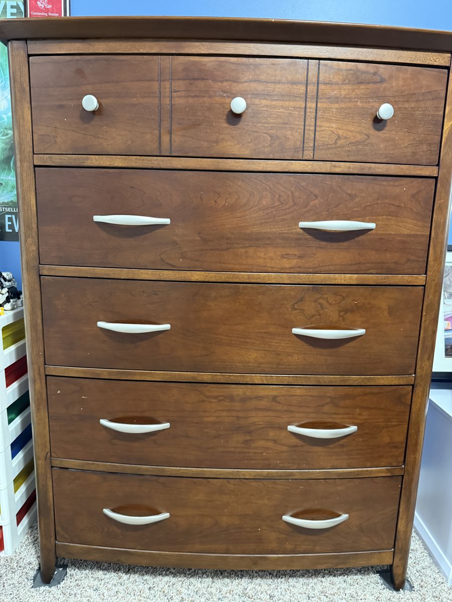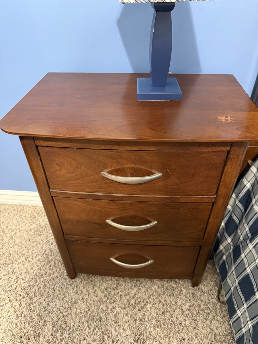 VenmoFull size bed (headboard, frame, box spring and mattress) with matching night stand and dresser originally purchased from RC Willey. All of them are in great condition - there is a small water ring mark on the nightstand, other than that all of the set is in great condition.
