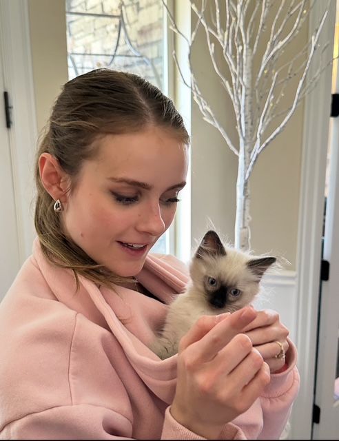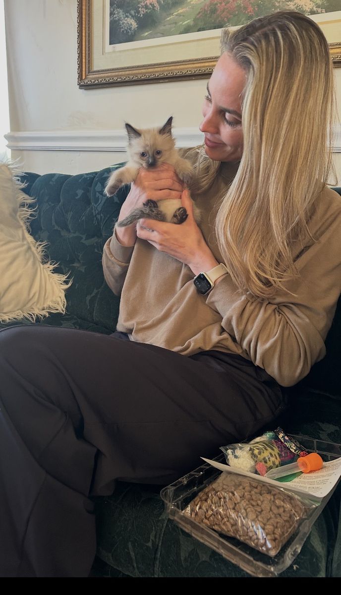 Our kittens come with: 1) transitional food 2) care and bonding instructions 3) crocheted toy and others with familiar litter scent, ball with bell toy etc. 4) starter litter box, and 5) collar to continue leash training.