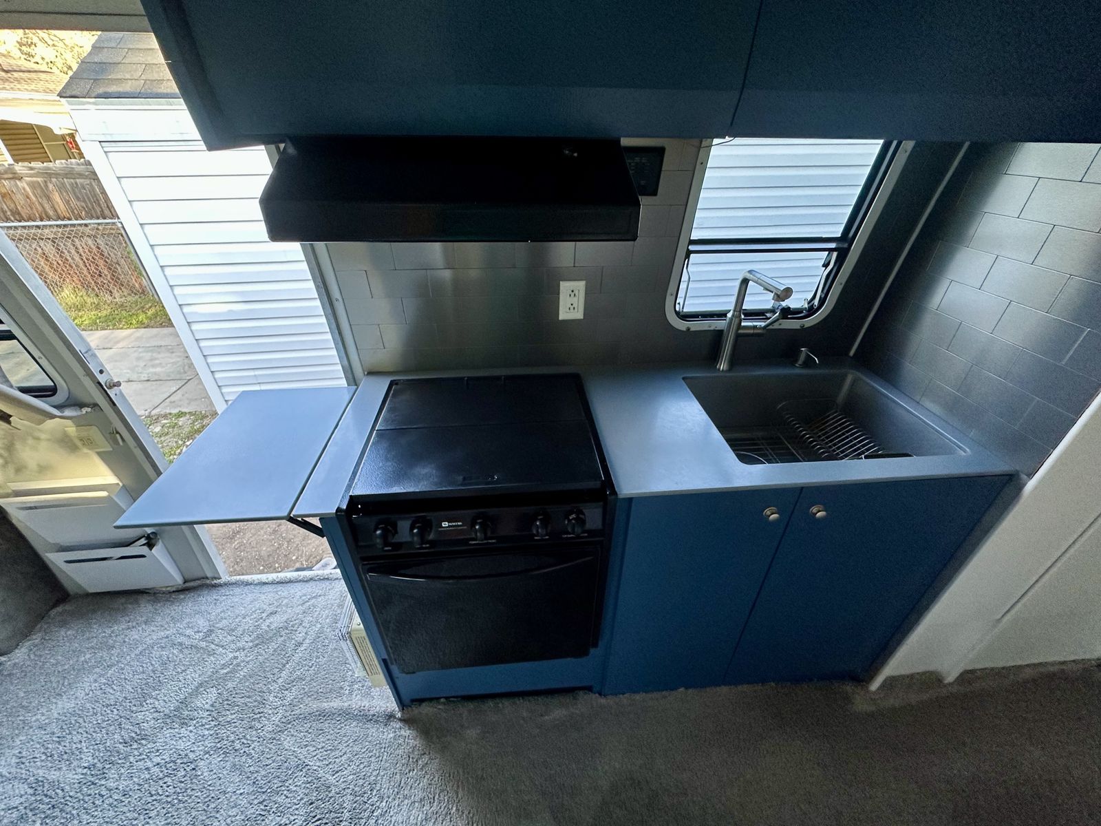 As it sits currently, the interior has an easily removable cozy carpet installed for cold weather comfort. Underneath the carpet is an excellent condition laminate flooring installed in 2017 (see photos). We are willing to remove the carpet ourselves prior to sale if you wish.