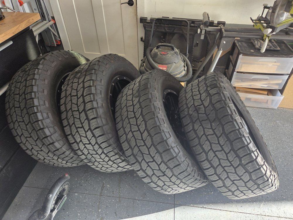 VenmoI have a set of 8x170 20 inch DX4 wheels with A set of Cooper Discover AT3 tires mounted on them. 2 of them have about 9/32nds tread, 2 have just under 13/32nds. Wheels are balanced and have TPMS sensors in them. Tires are 325/60/20 which is comparable to 35/12.50/20. Tires and wheels are both in great shape, just went with a different set up. Please call or text if interested! No wheel damage and no pitting they are in great shape