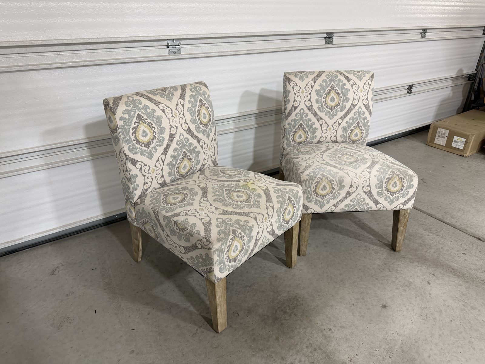 ZelleTwo Chair is good condition. Could use a little surface cleaning but no smells.
