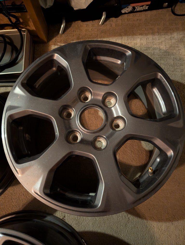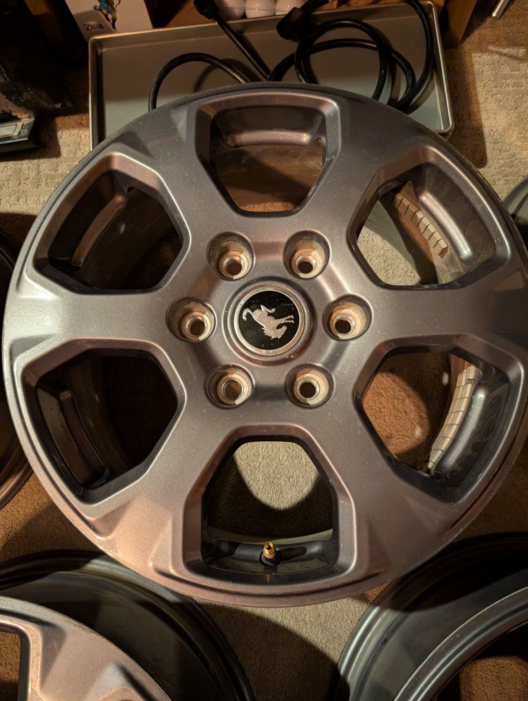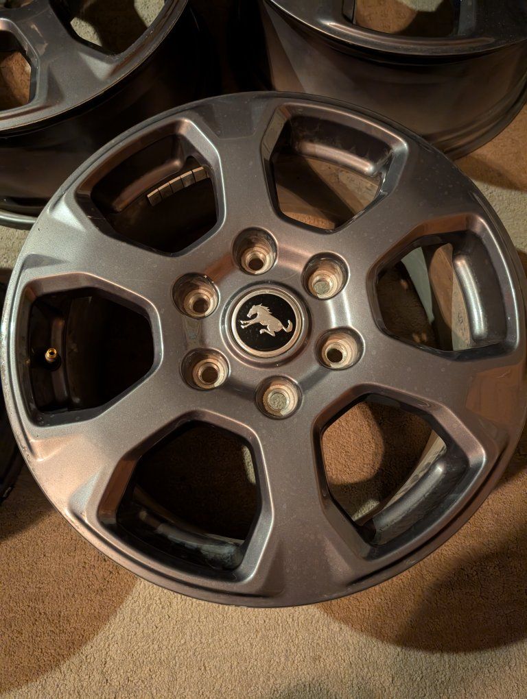 PayPal17" wheels from a 6th gen Bronco. Saw about 21k miles of use. Mostly commuting with some off-roading. Bronco emblems not included.