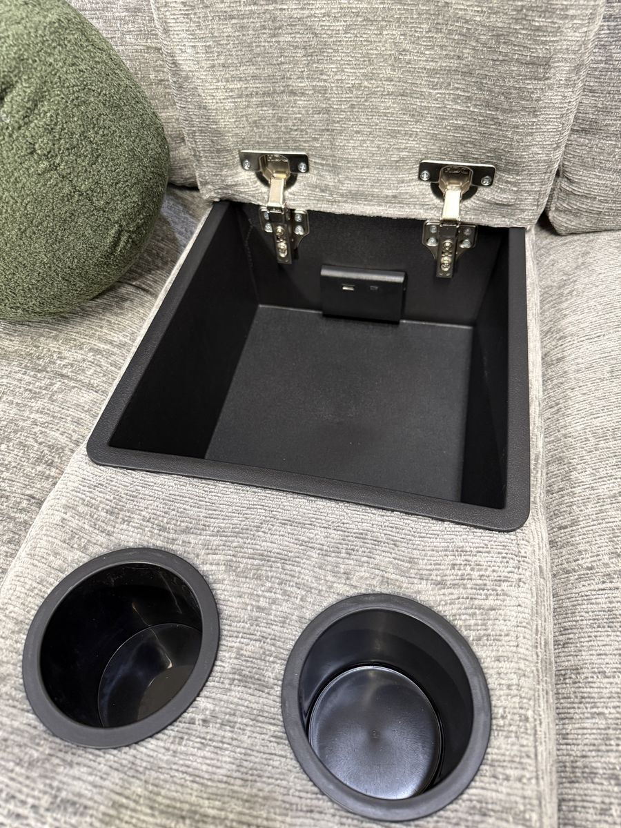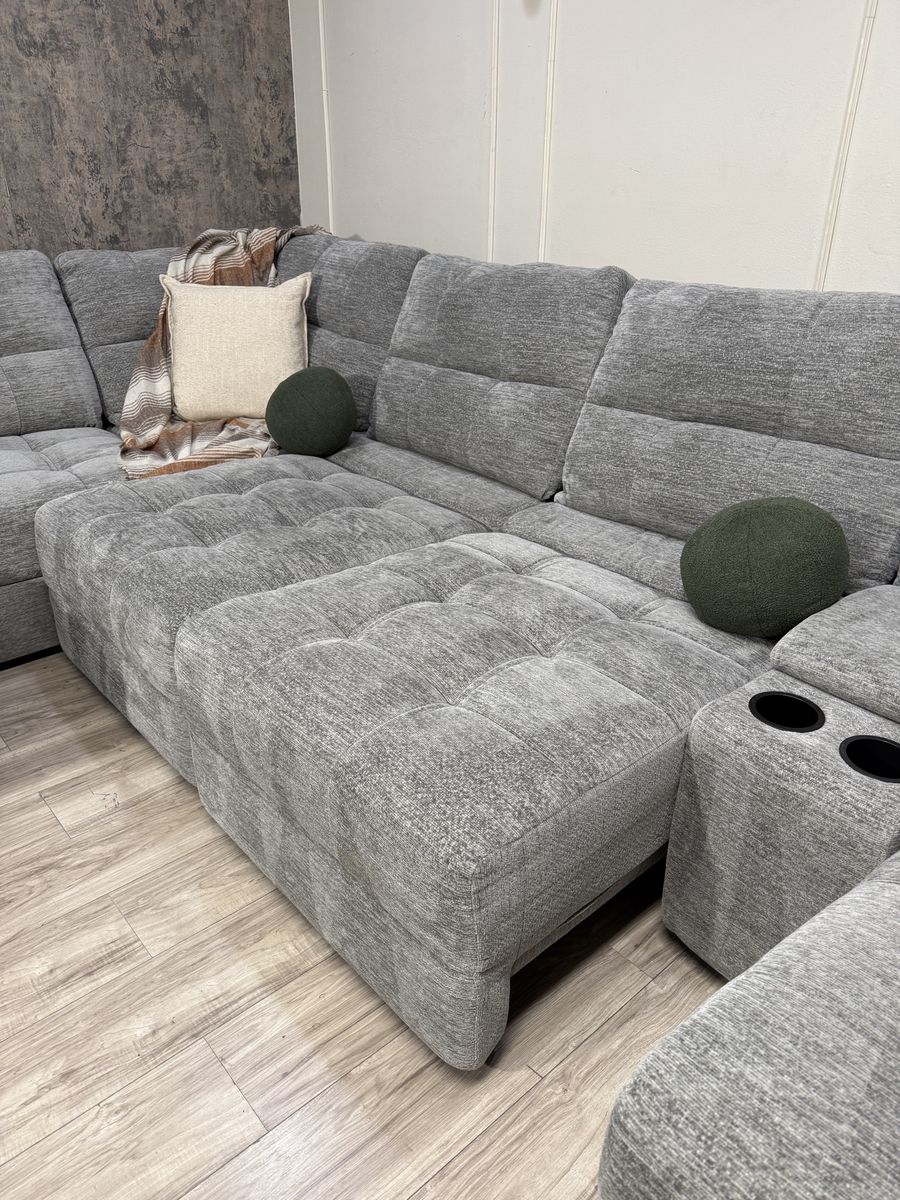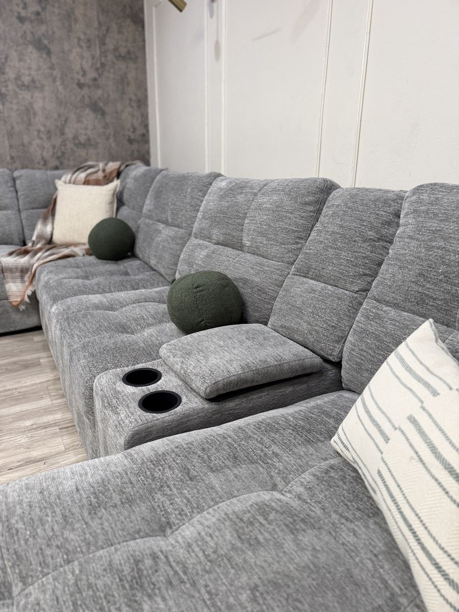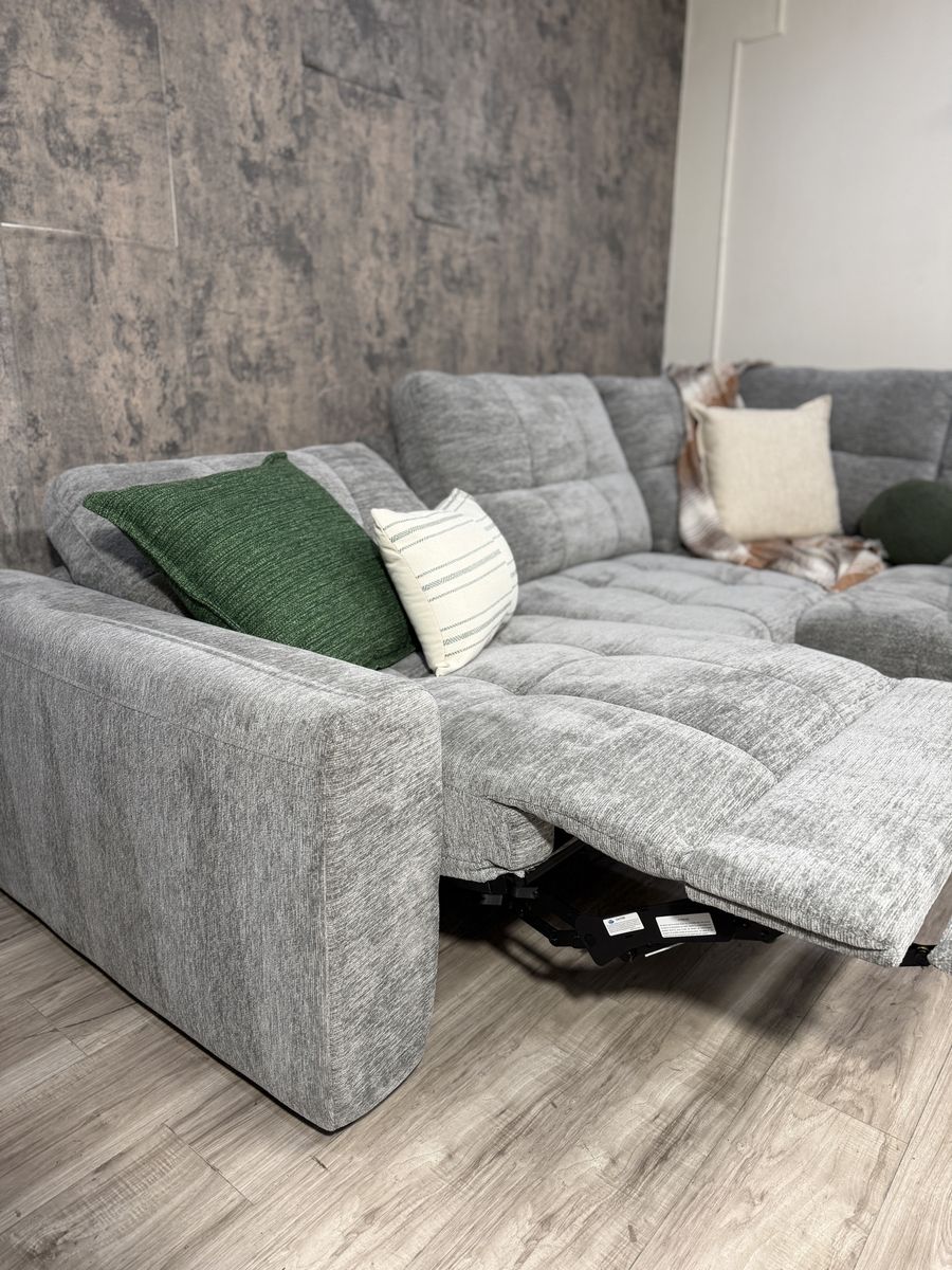 Personalize Comfort with Luxurious Lounging Capability The Emma Fabric Power Sectional with Power Footrest is a versatile and modern upholstered sectional with ample room for family and friends. Offering both style and functionality, the Emma features a power recliner, a storage chaise, and 2 power sliding seats that extend to create a cozy lounging space. Designed for flexibility and comfort, the power recliner can adjust to infinite positions while the 2 power sliding seats can extend your seat from 42.5” all the way to 61.5” to create the ultimate relaxation experience. Keep devices within easy reach and fully charged with 3 USB ports and 3 USB-C ports, which are located in the storage console and on each arm. The storage console has two removable cup holders that are dishwasher safe. Fully padded arms provide a refined, tailored look, while the fully padded chaise design offers comfort with full leg support.