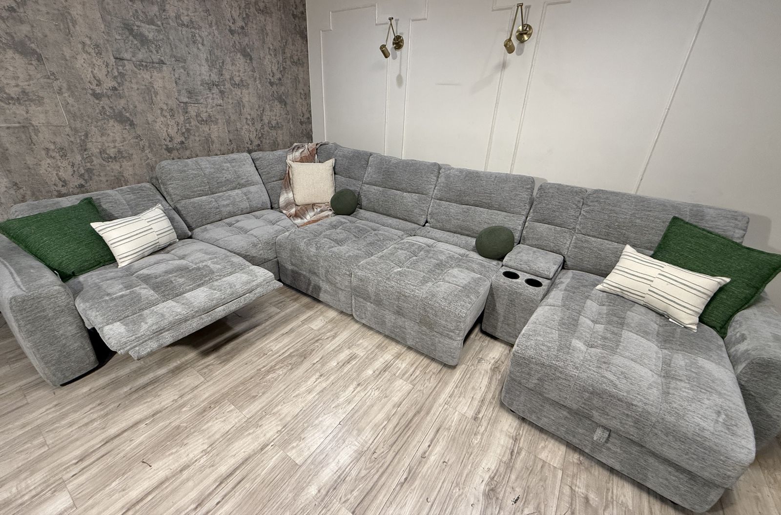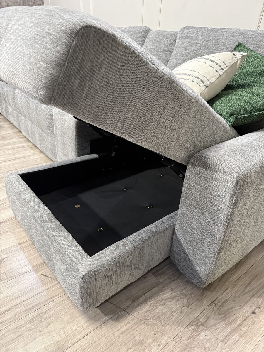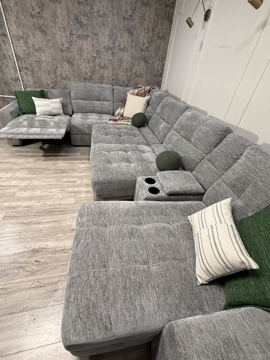 Personalize Comfort with Luxurious Lounging Capability The Emma Fabric Power Sectional with Power Footrest is a versatile and modern upholstered sectional with ample room for family and friends. Offering both style and functionality, the Emma features a power recliner, a storage chaise, and 2 power sliding seats that extend to create a cozy lounging space. Designed for flexibility and comfort, the power recliner can adjust to infinite positions while the 2 power sliding seats can extend your seat from 42.5” all the way to 61.5” to create the ultimate relaxation experience. Keep devices within easy reach and fully charged with 3 USB ports and 3 USB-C ports, which are located in the storage console and on each arm. The storage console has two removable cup holders that are dishwasher safe. Fully padded arms provide a refined, tailored look, while the fully padded chaise design offers comfort with full leg support.