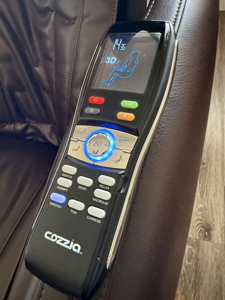 Selling a Cozzia EC-618B full-body massage chair in good used condition. Works well and looks great overall. Very comfortable chair with zero gravity recline, full-body massage, foot/calf massage, air compression, and multiple massage programs.
