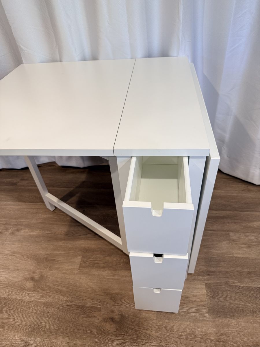 PayPalNorden gateleg table in white. Great space saving option! Compact folding table is useful for dinning, work, gaming, and more!