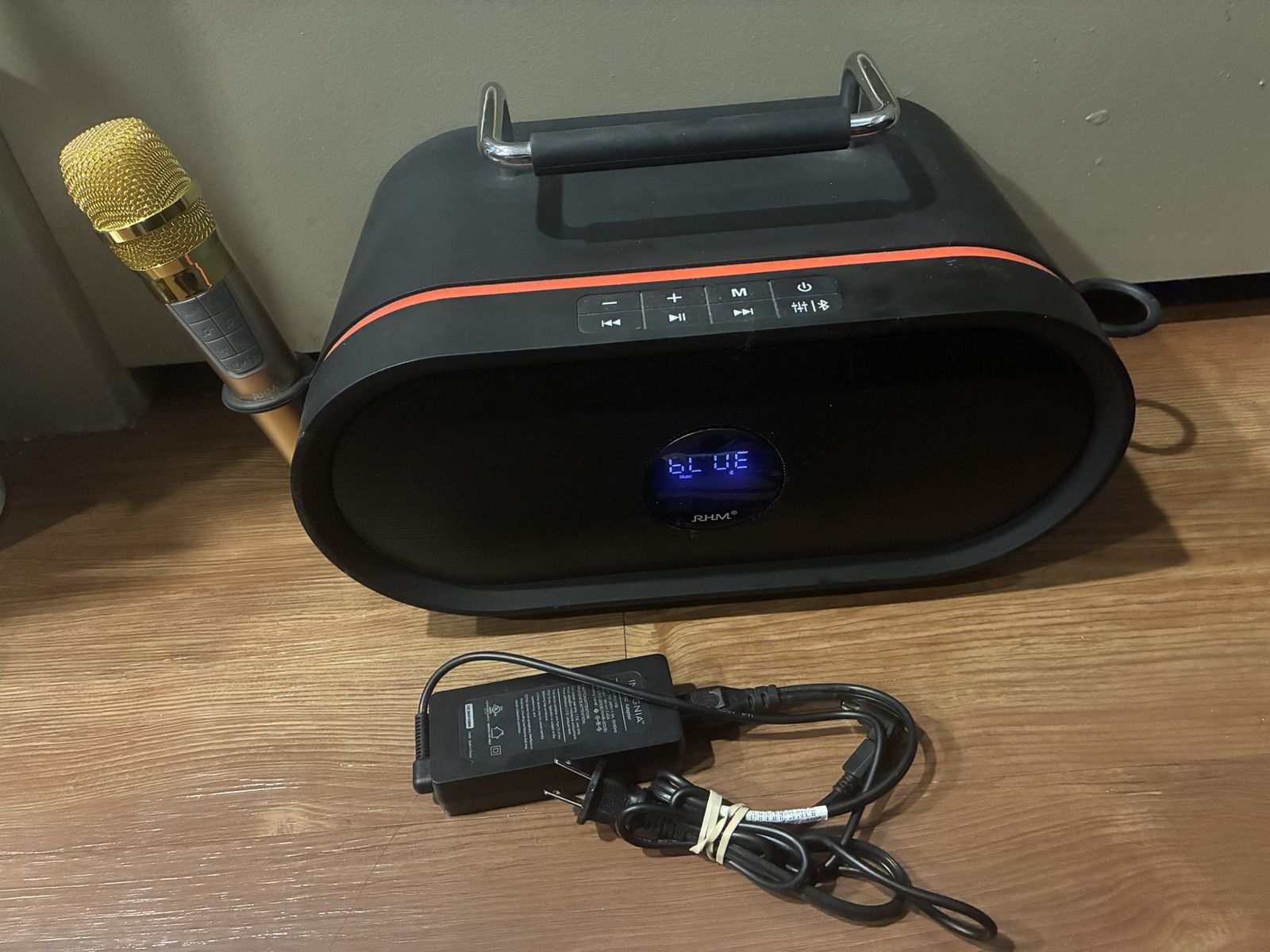 RHM K666 Karaoke Machine with Powerful & Clear, 1 Wireless Mic Bluetooth TESTED. Comes with microphone and mic charger, and charging cable.