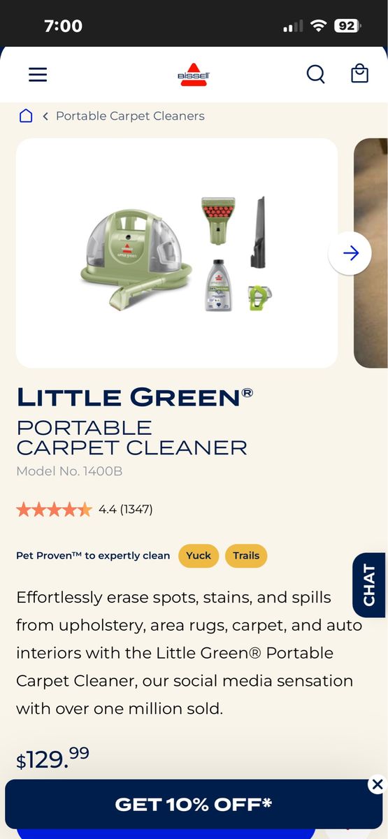 ZelleBissell little green portable deep cleaner, great for pets, brand new or have a used/like new one as well. Comes with 2 attachments and cleaner.