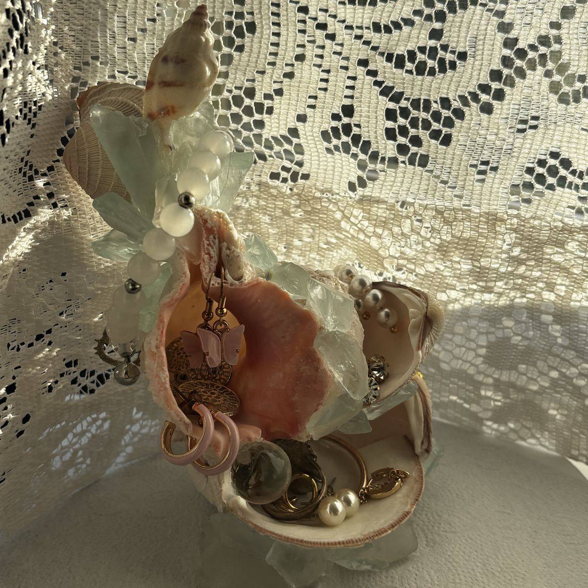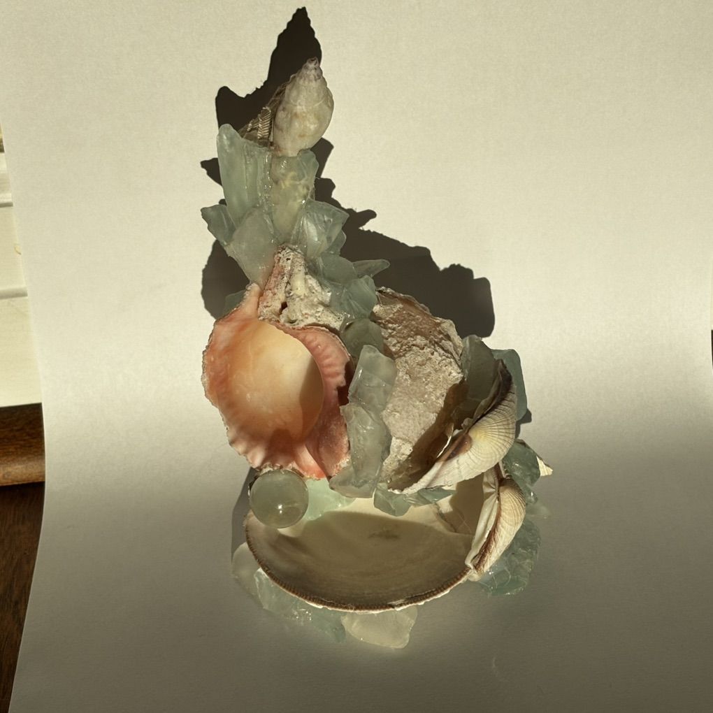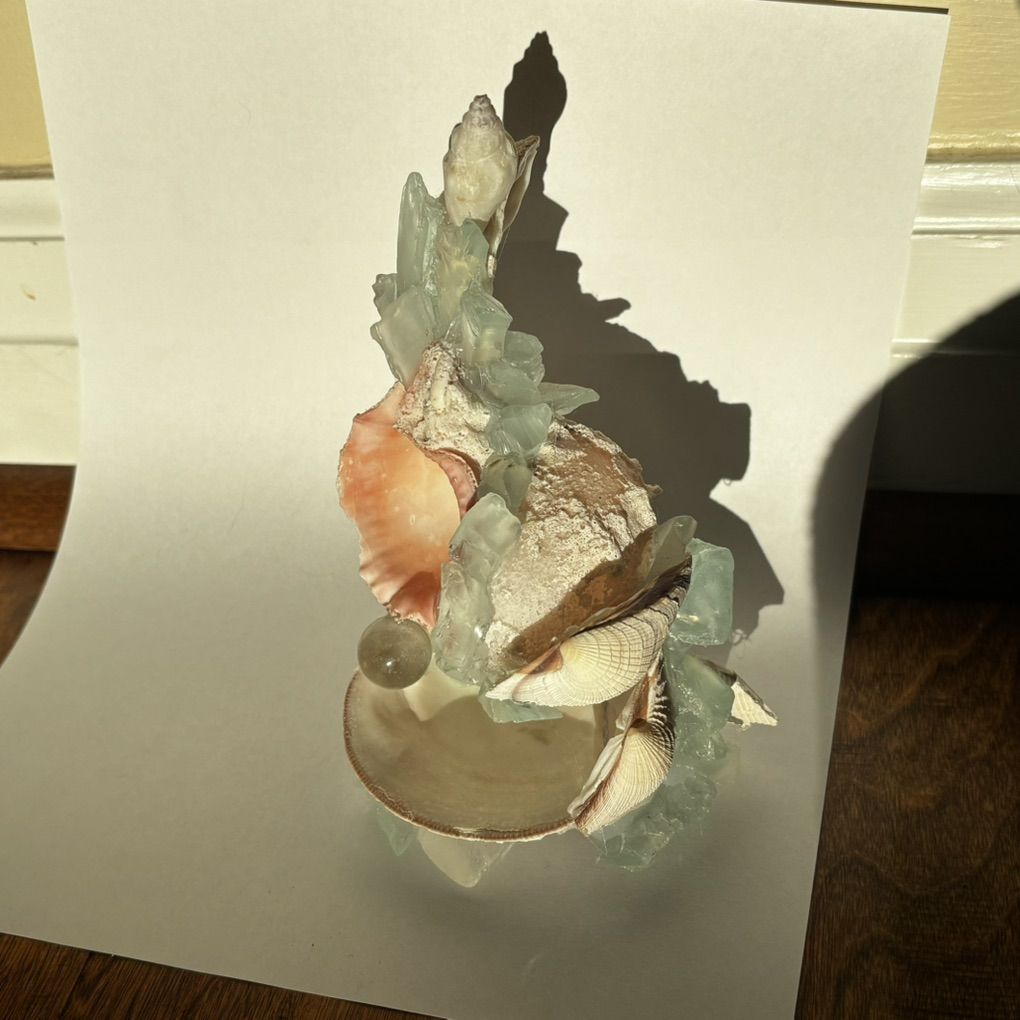 VenmoMade from smooth sea glass and seashells. 5.8 inches high and 3 inches wide.