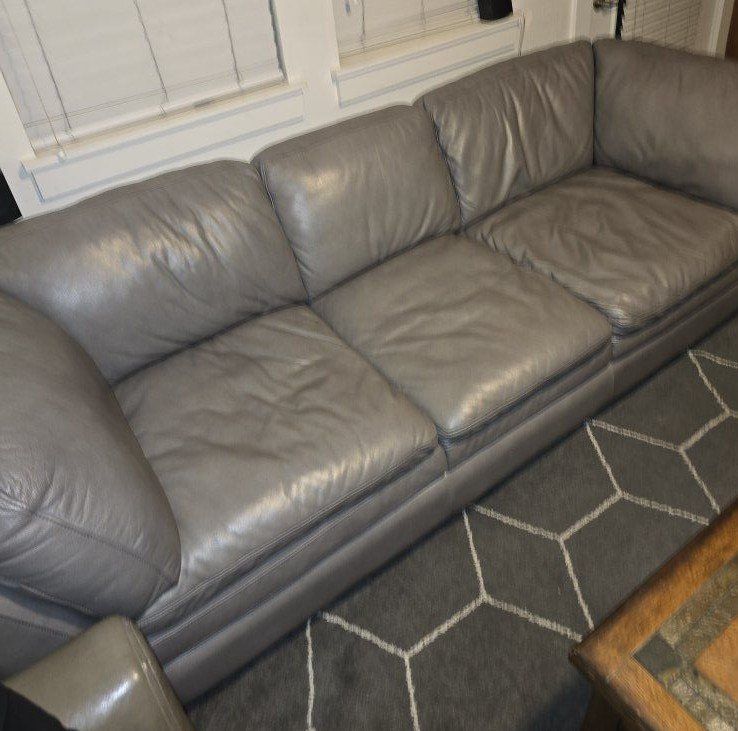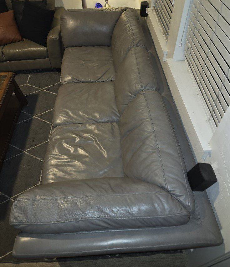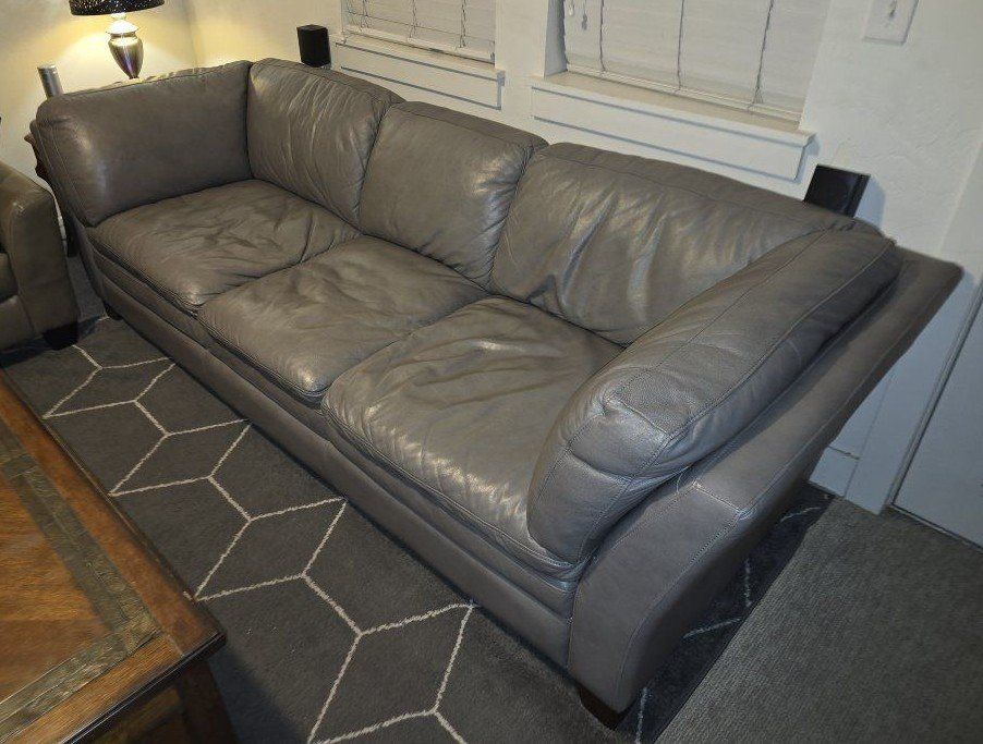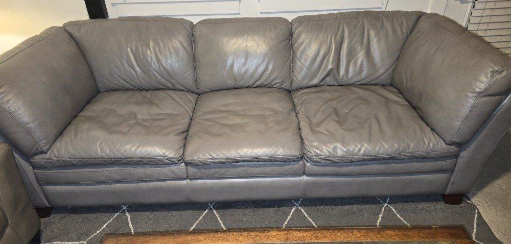 PayPalBeautiful gray leather sofa. perfect condition, no holes or tears or scratches. This sofa was always kept in spare bedroom, hardly ever used. New couches are getting delivered, having to sell this one. * pillow's not included. $200