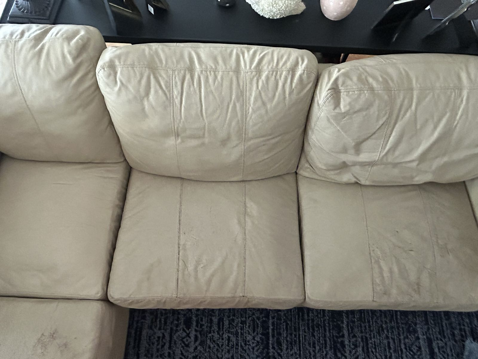Well loved leather sectional. 100" x 100". $500 obo. Pick up asap!