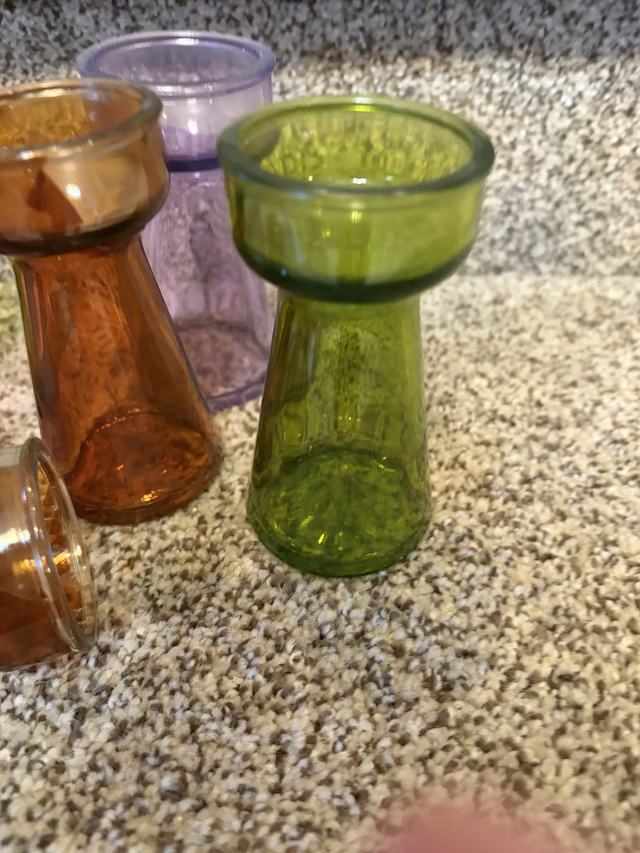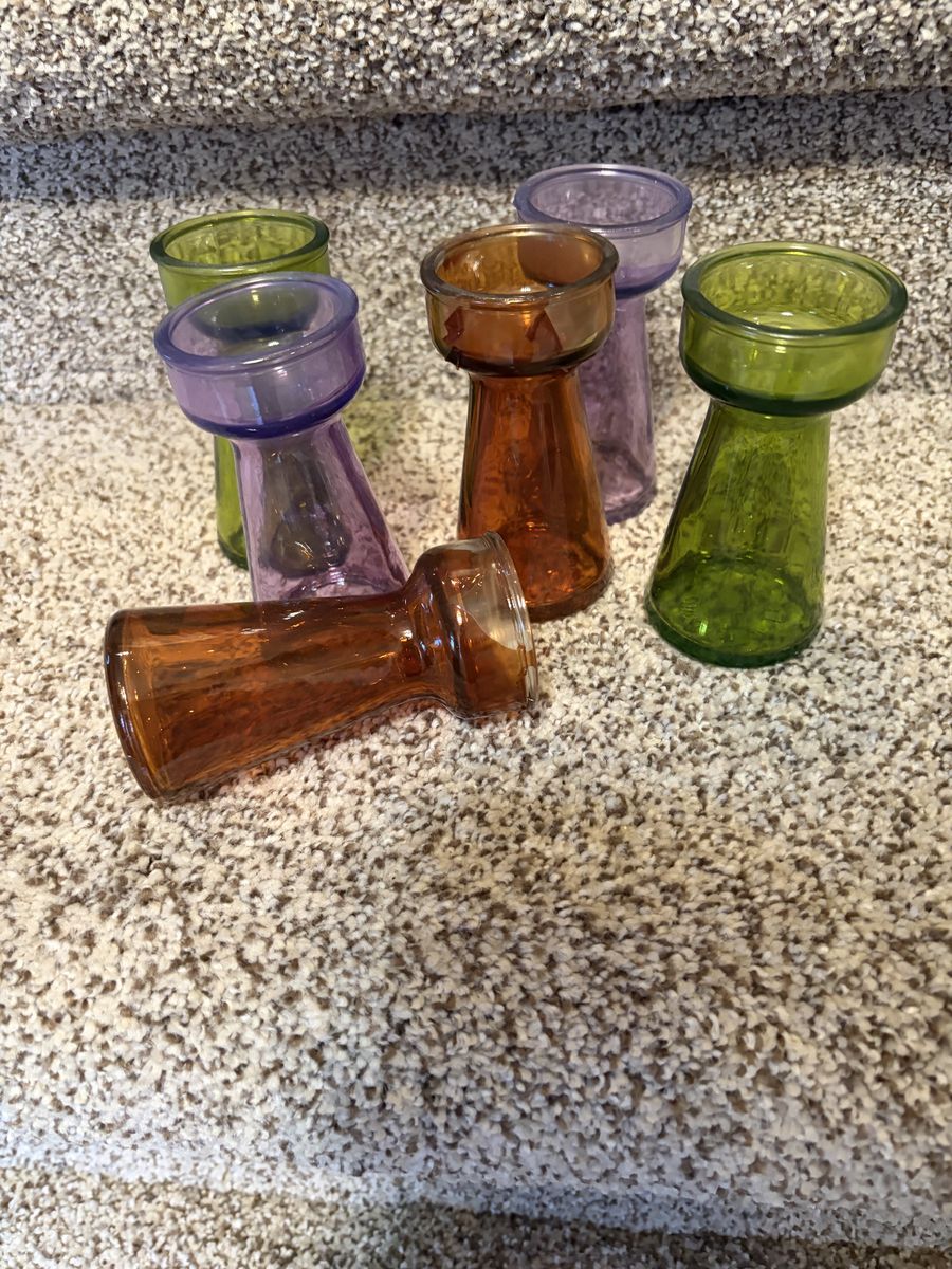 6 little vases. One is missing some color. Otherwise,! Good condition.