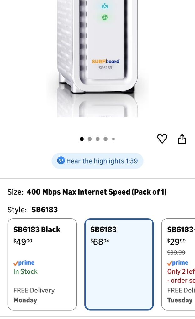 VenmoARRIS SURFboard Docsis Cable Modem SB6183 Like New. Works well. No longer needed.