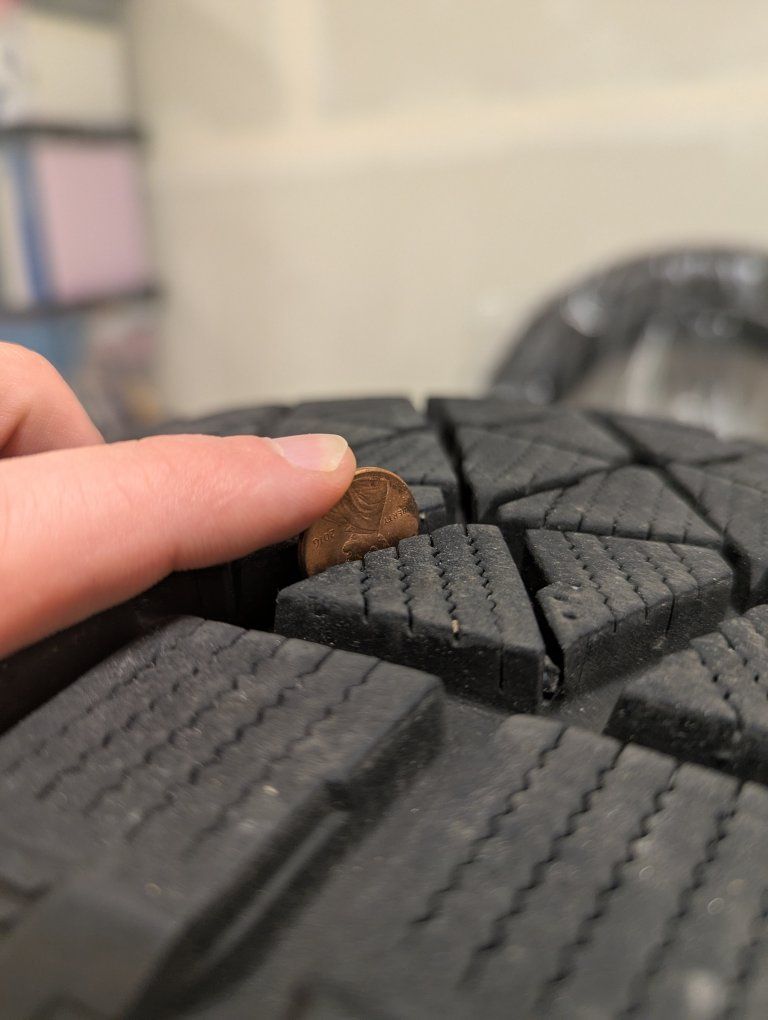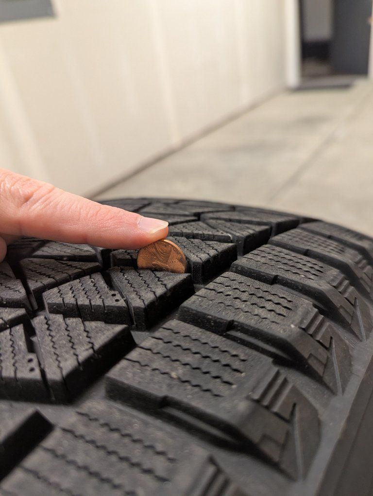 Purchased from Costco in December 2024. Used on a 2020 Ford Escape Hybrid for past 2 winter seasons (about 10k miles). Tread appears to be about 10/32" (see photos w/penny). Moving out of state, so no longer needed.
