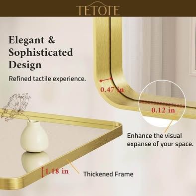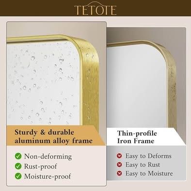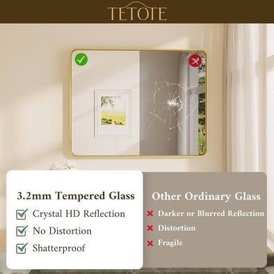 In Box TETOTE bathroom wall mirror is made of HD glass and premium metal frame. Rectangular shape with rounded corners of the framed mirror for a modern look. Meet the decoration needs of industry, rustic and modern bathroom style, bedroom vanity, entryway, farmhouse, hotel or living room