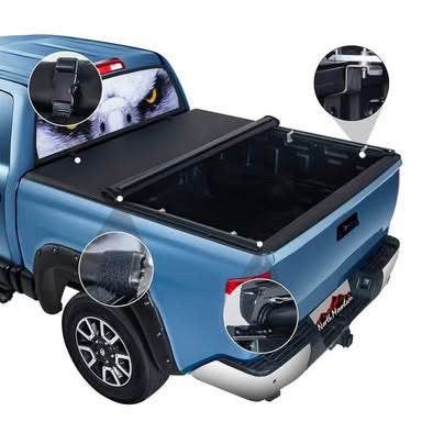 Easy to Roll Up North Mountain Tonneau Cover to Front of the Pickup Truck Bed with Strap for Full Access and easy storage in the open position.