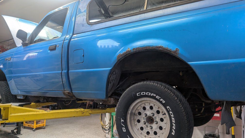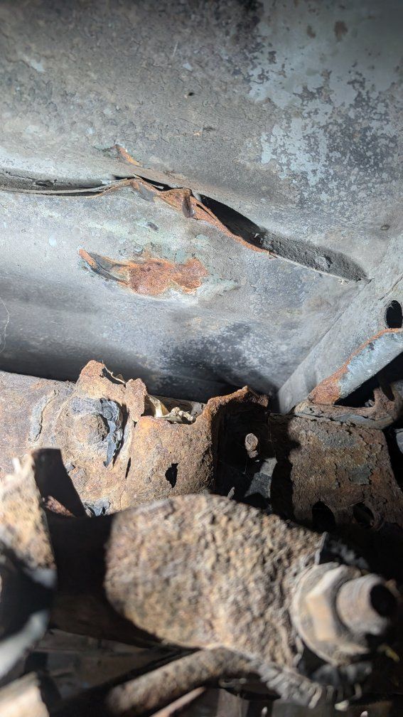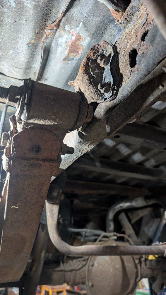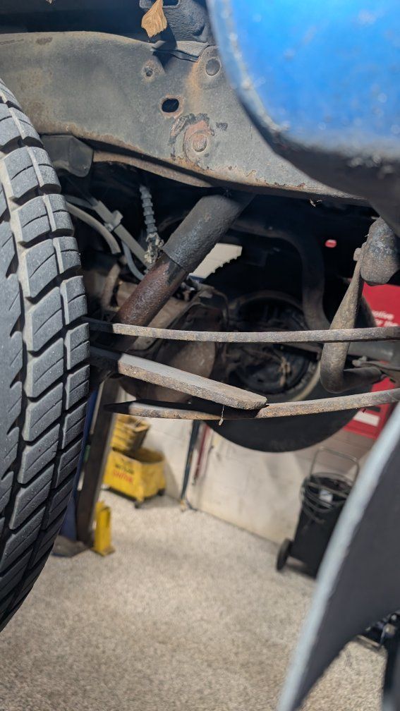 The fuel pump has been going out, though it's hit and miss. I recently discovered the diver side leaf spring is detached from the rear of the frame and has a split in it. Please see pictures! I'm going to get the break welded, so it's not a death machine, but it will need replacement, for safety sake.