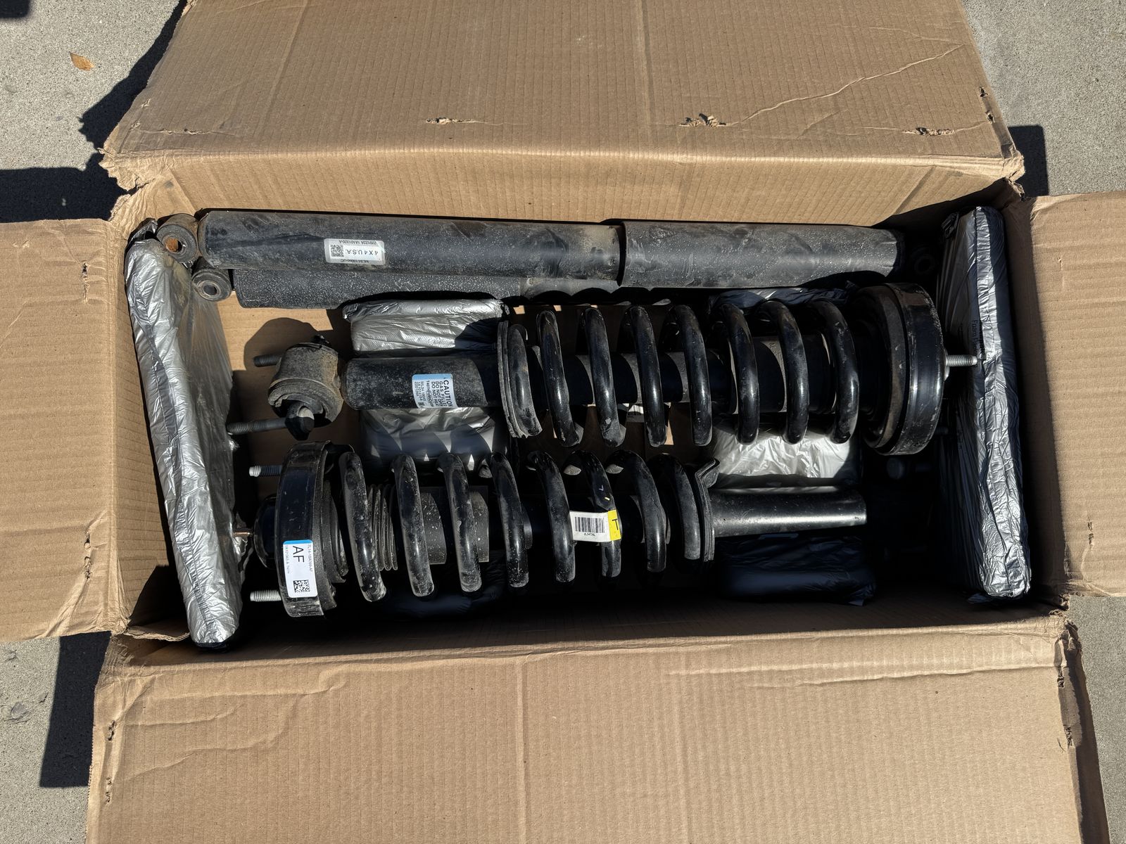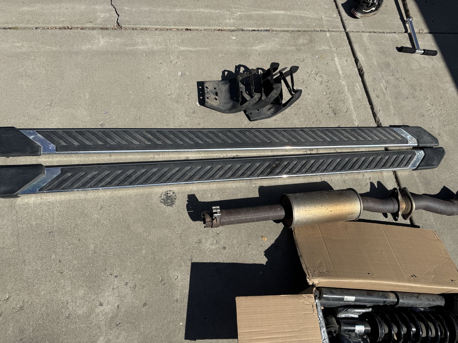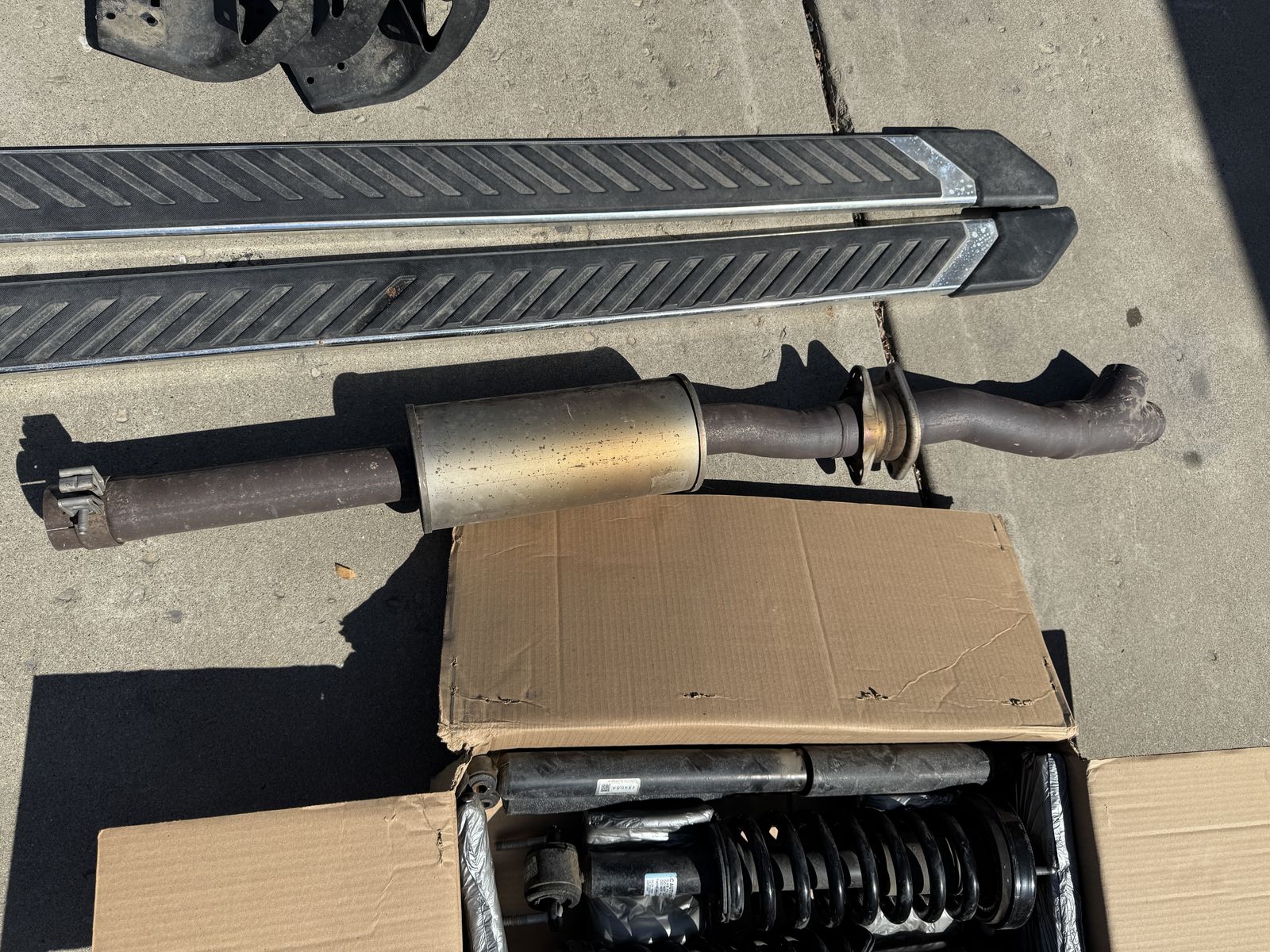 Front and rear struts/shocks, running boards and exhaust resonator.
