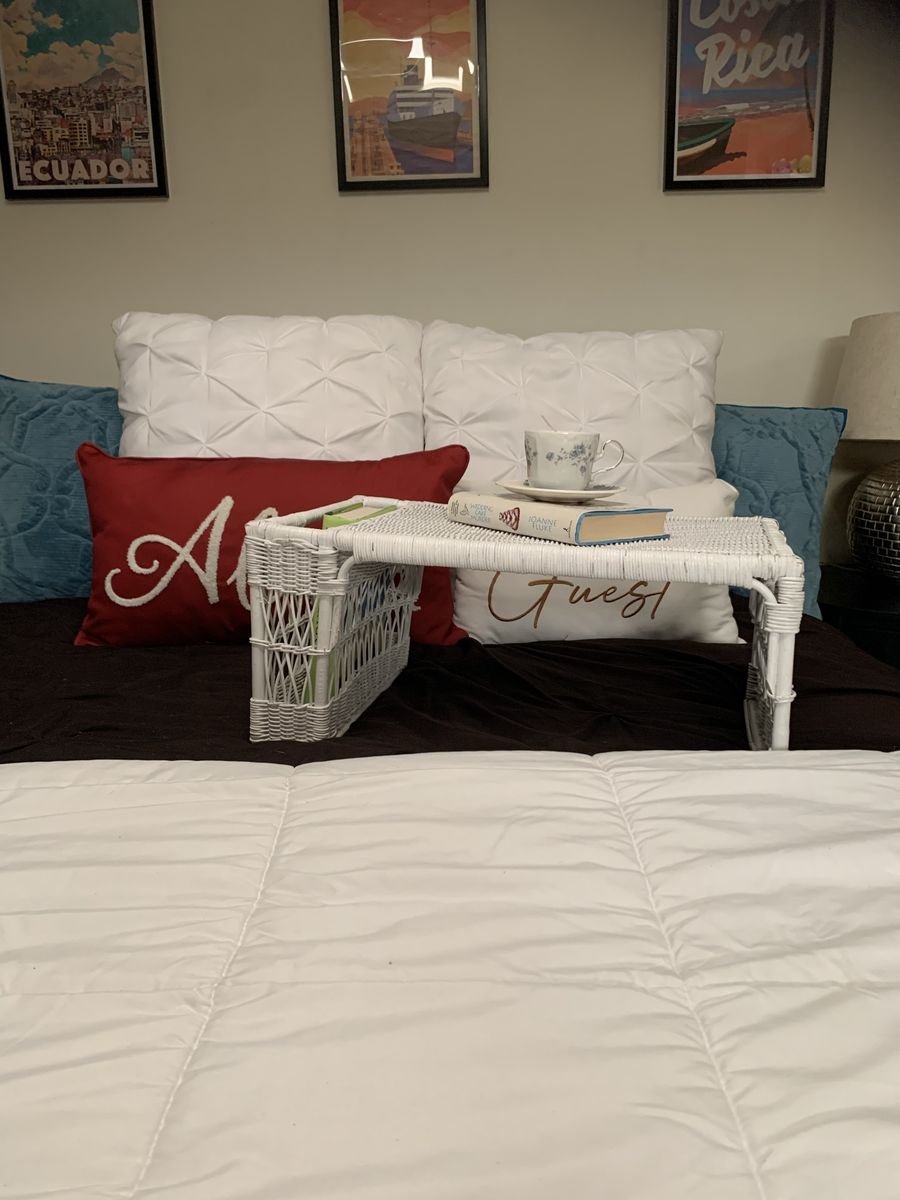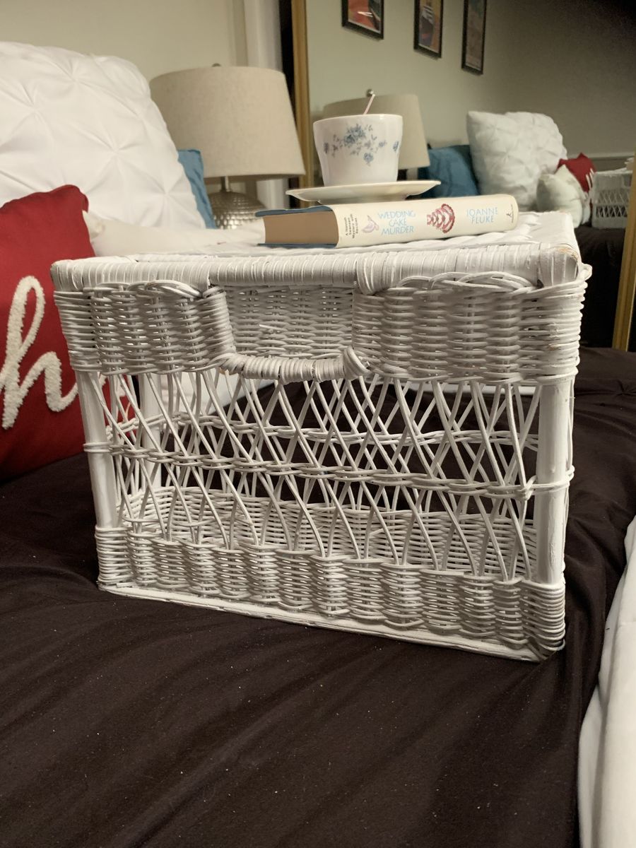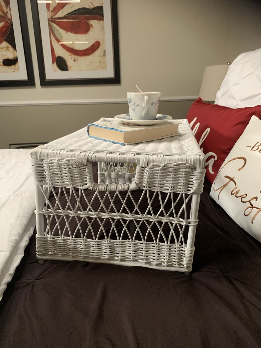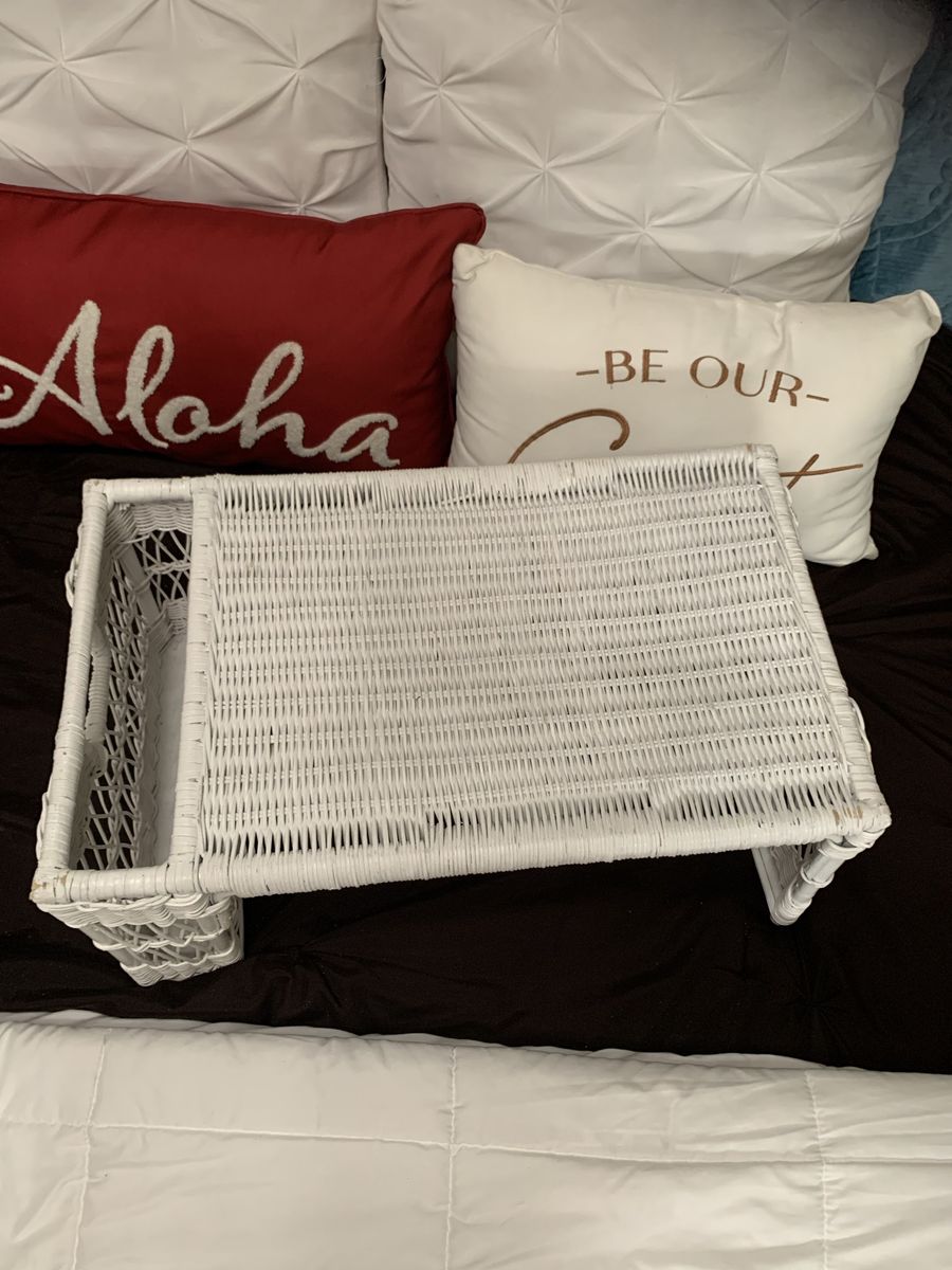 VenmoRelax with this coastal cottage bed tray. 22”L x13”D x 10”H. The side magazine or book pocket is 10”Hx 12”D x 2 1/2”W. Clean. Hold with Venmo. Non-smoking/No pet home.