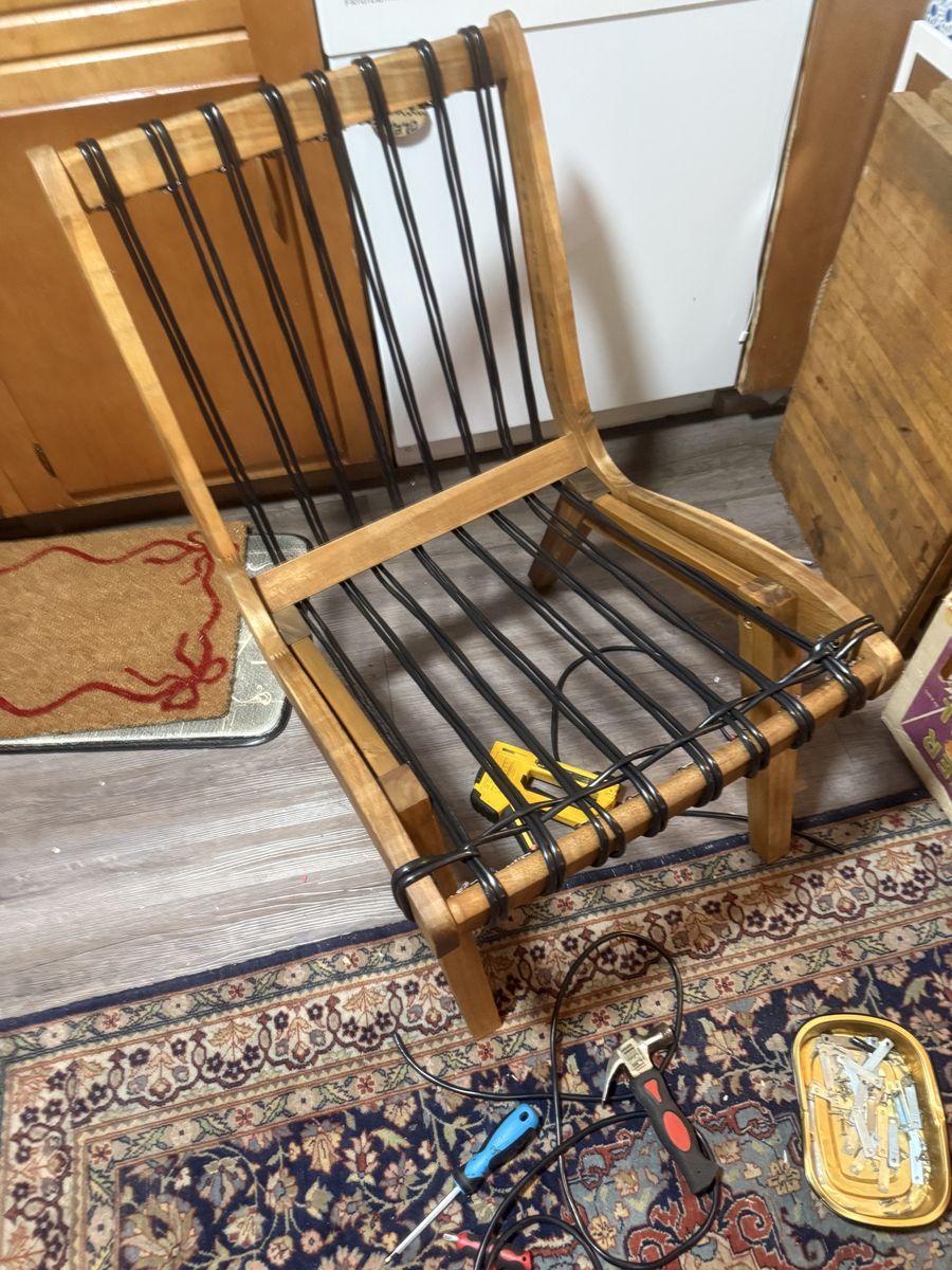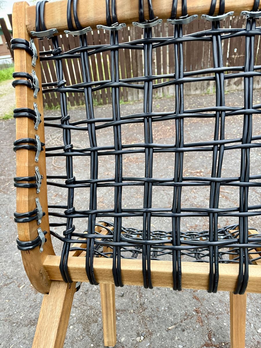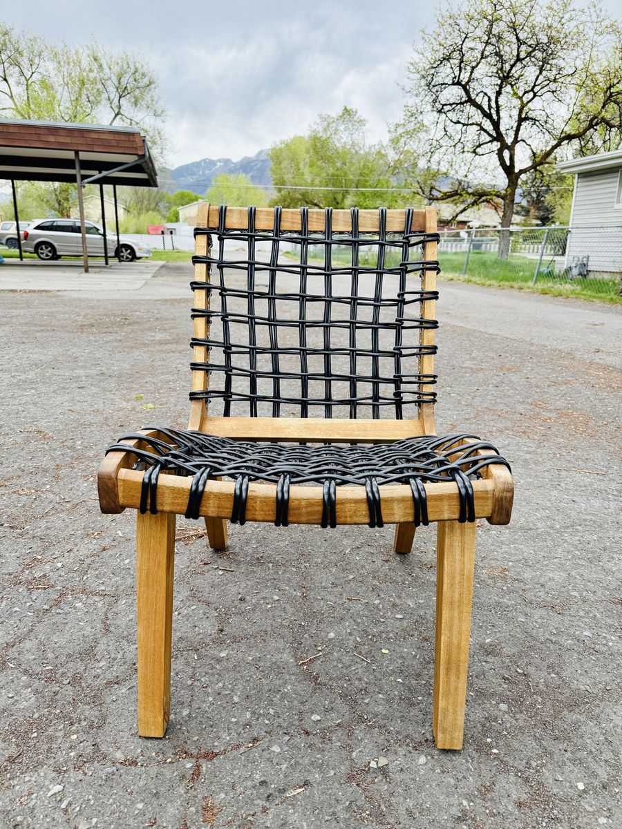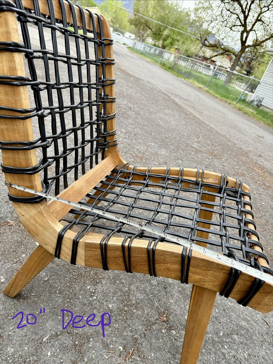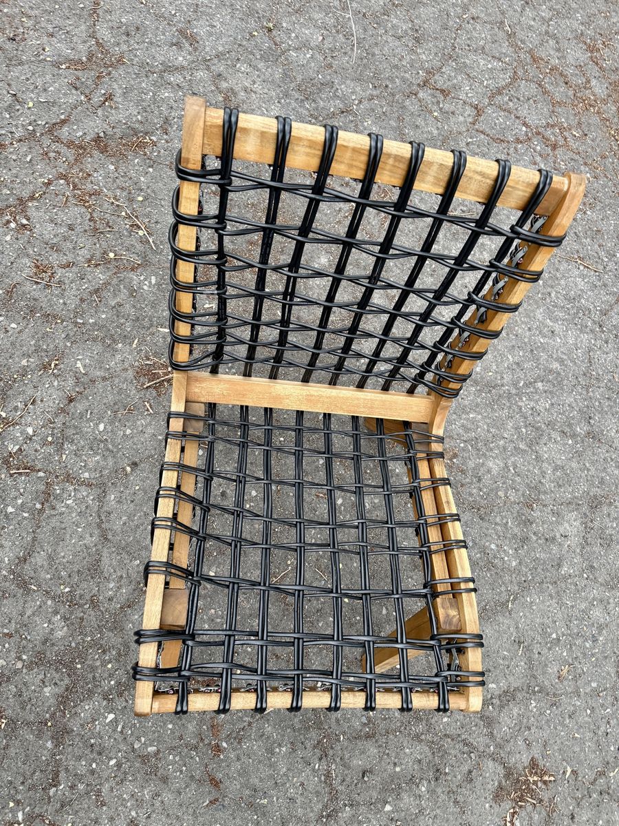 GooglePayHandmade upcycled lounge chair. Made from leftover cat5 and audio wire. Very strong and can hold lots of weight. Cool extra seating in a living room, office, bedroom or music listening space!