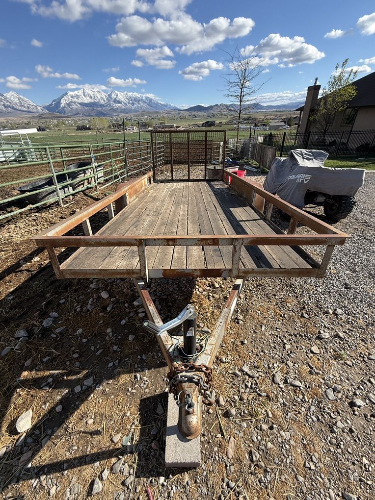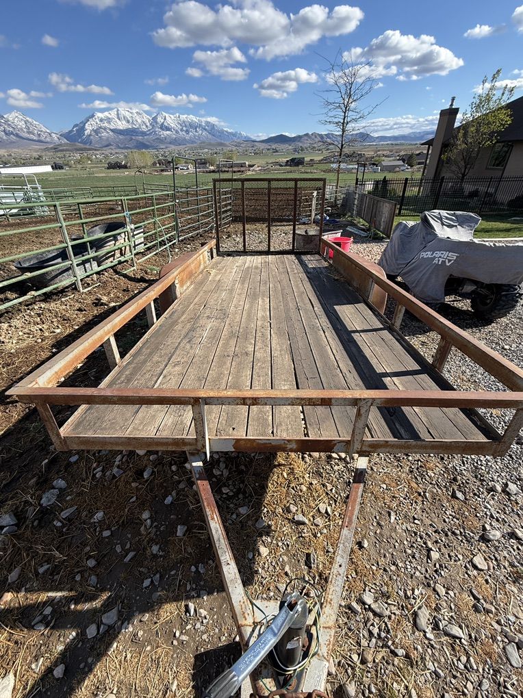 VenmoThis has been a great trailer for me, I just needed to upgrade to a little bit longer one. It’s 16’ long with two 3500lb axles. The tires are fairly new. It tows perfectly with no issues. The deck is in great shape. I have kept the wood treated. The drop down gate works great. There are no brakes on it. It was just rewired this year, but one of the rear lights got broke. It just needs to be replaced.
