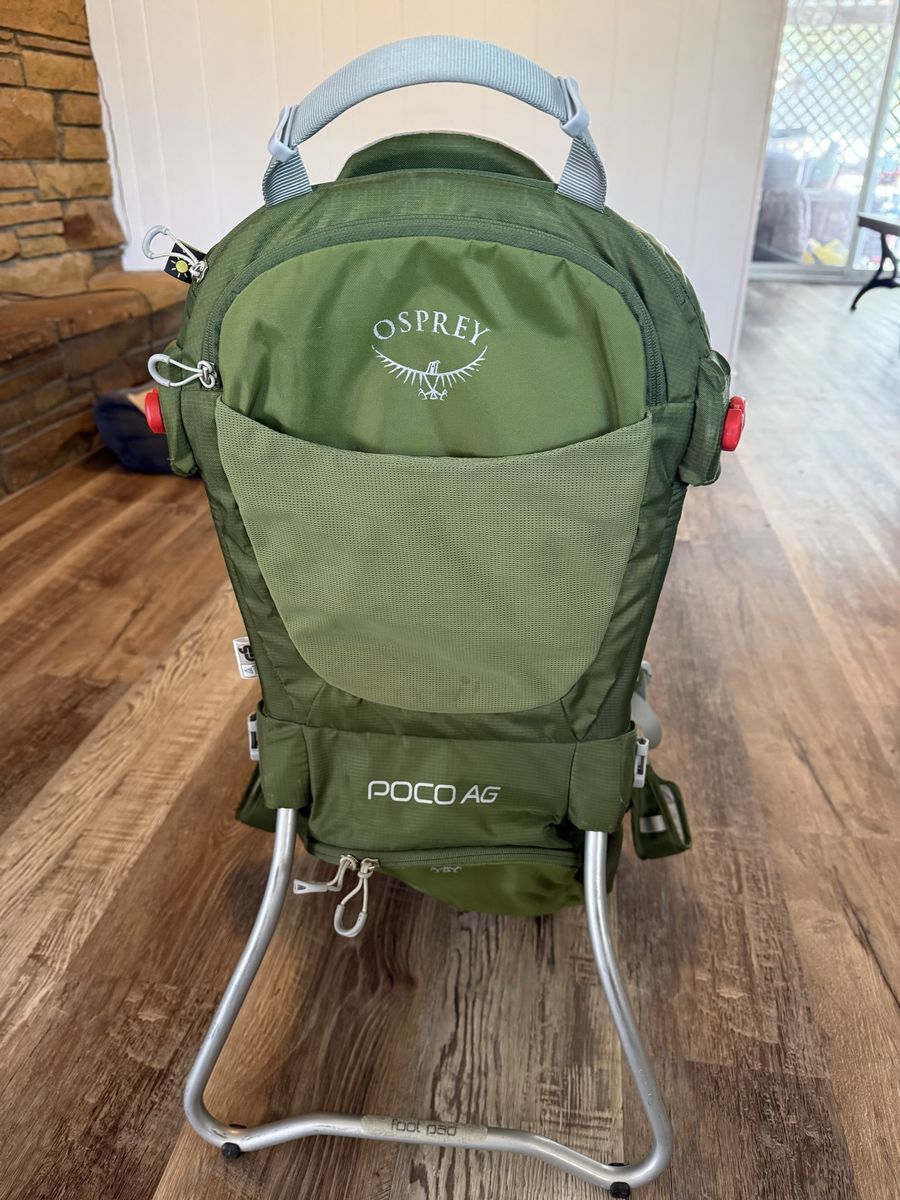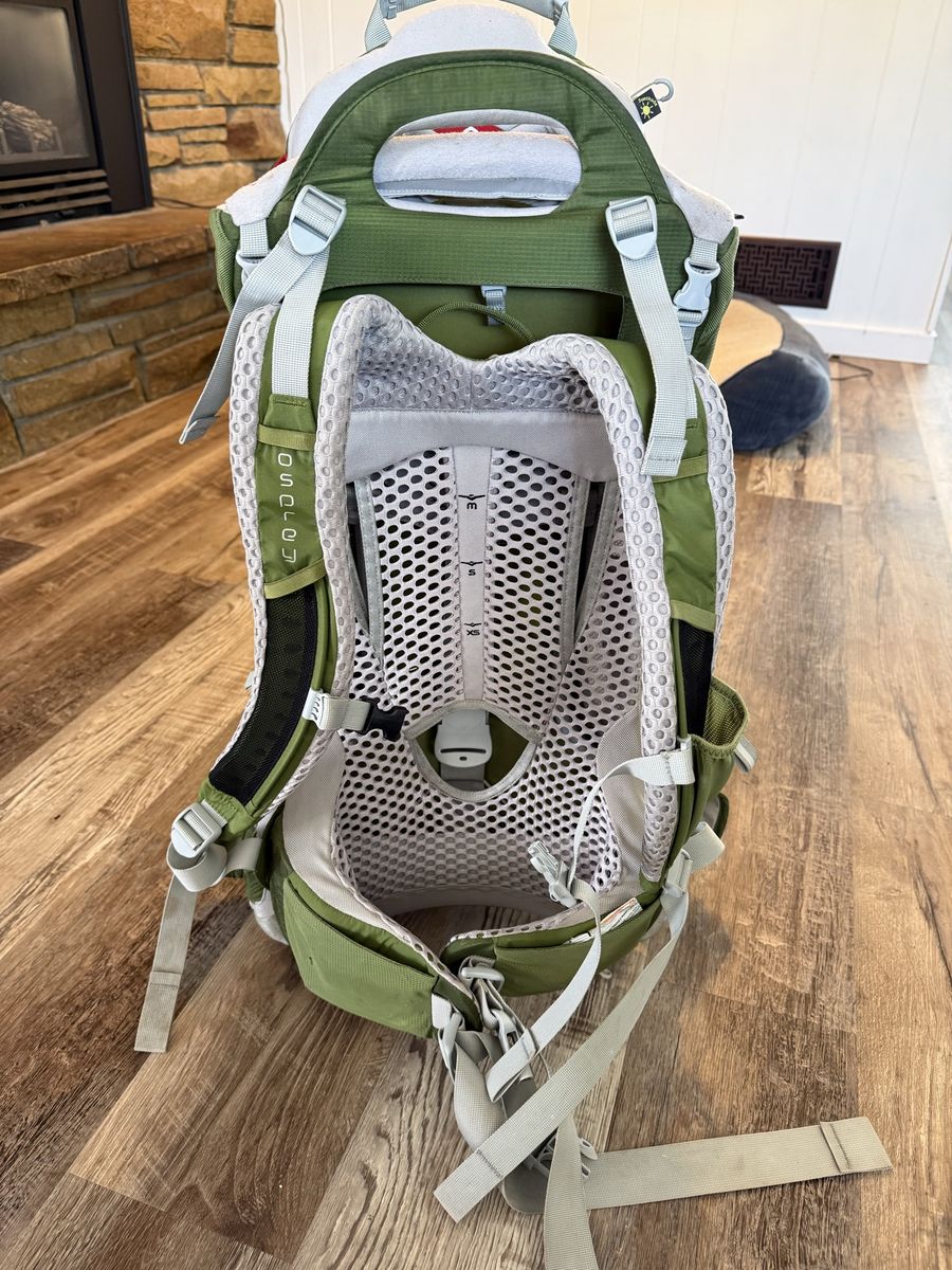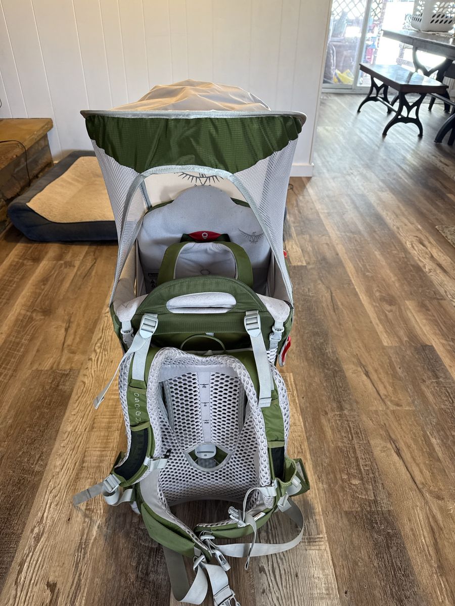 VenmoGreen and white hiking backpack perfect for carrying kids on a hike or outing. Still in great condition.