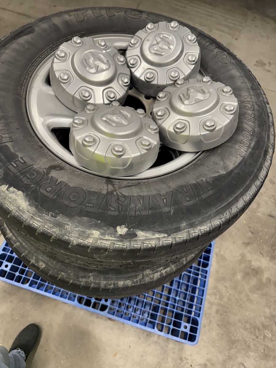 Came off my 2021 Ram. Steel 18" rims, tires have some tread left on them. I need them gone.