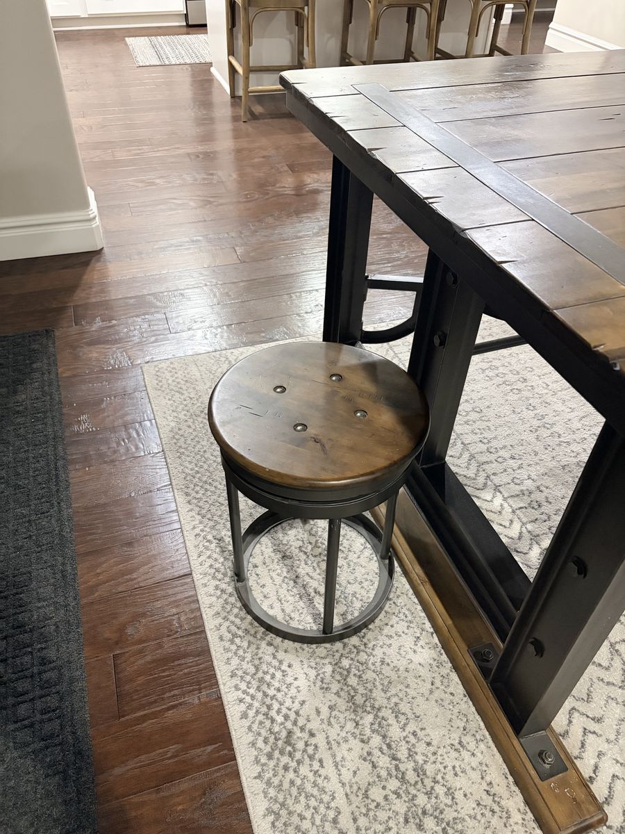 ZelleWorld Market wood top metal frame with 4 swivel seats and 2 extra chairs $1600 new