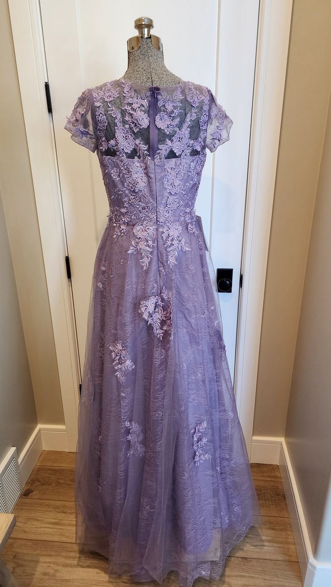 Step into a fairytale with this breathtaking lavender floor-length gown by Wear Your Love. This dress is a masterpiece of texture and romantic detail, featuring layers of delicate floral lace and soft tulle that create a dreamy, ethereal silhouette.