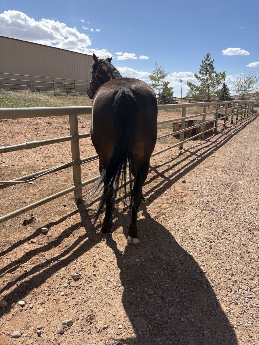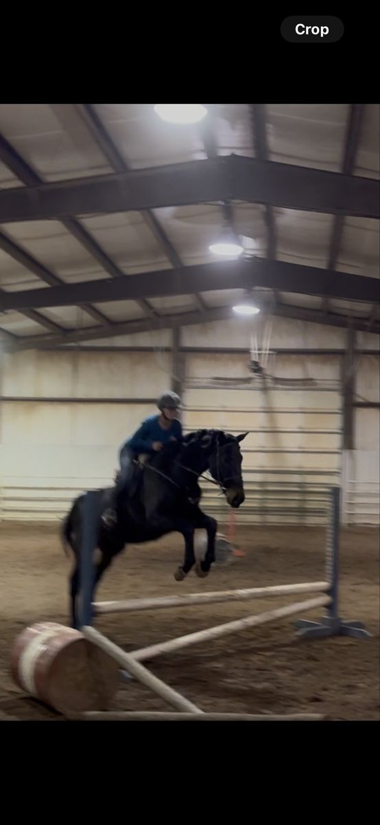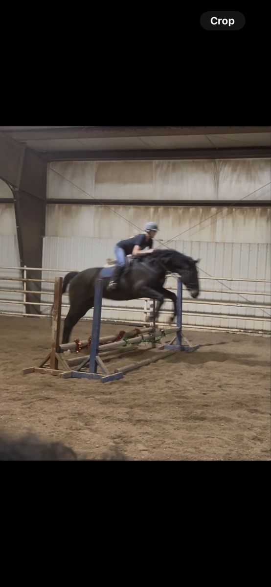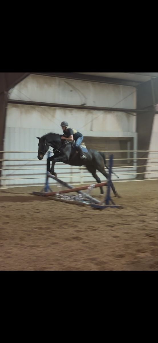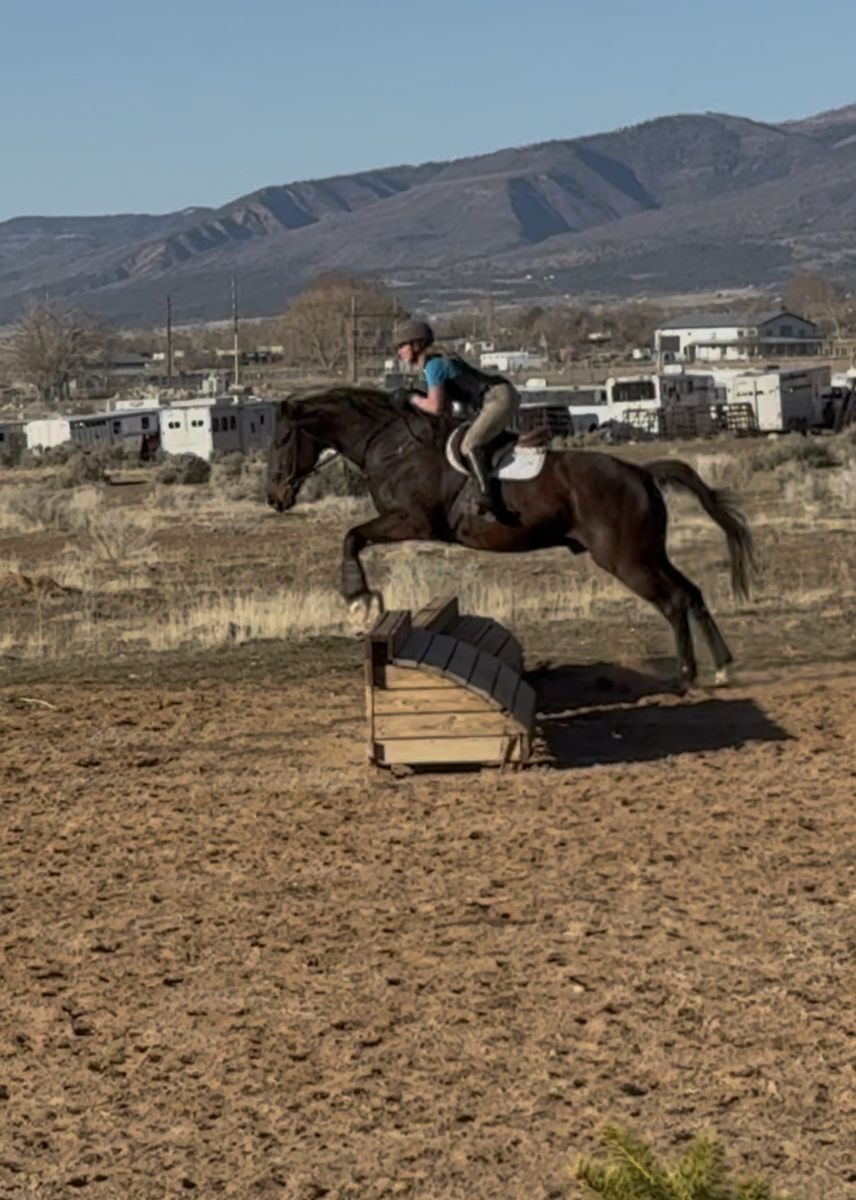 Moose is a sweet, willing boy who’s been ridden both western and English. He’s coursing small courses, cross rails-2’3” with potential for higher. He has an uphill, self carrying canter and a smooth, steady trot. Steady pace to the jumps and gaining adjustability, suppleness, and more lateral movement. He likes to trail ride, has helped gather cows on the mountain, schooled cross country where he was very brave over all the Starter obstacles and has been to one small local English show. Moose has a great temperament with an in your pocket type personality. He’s easy going with no bad habits or behaviors. No maintenance. He’s currently barefoot and an easy keeper. Good for farrier and trailering. Recent PPE on file with zero concerns. Best suited for an intermediate rider or someone under a trainer. Contact me for more videos and with any questions!