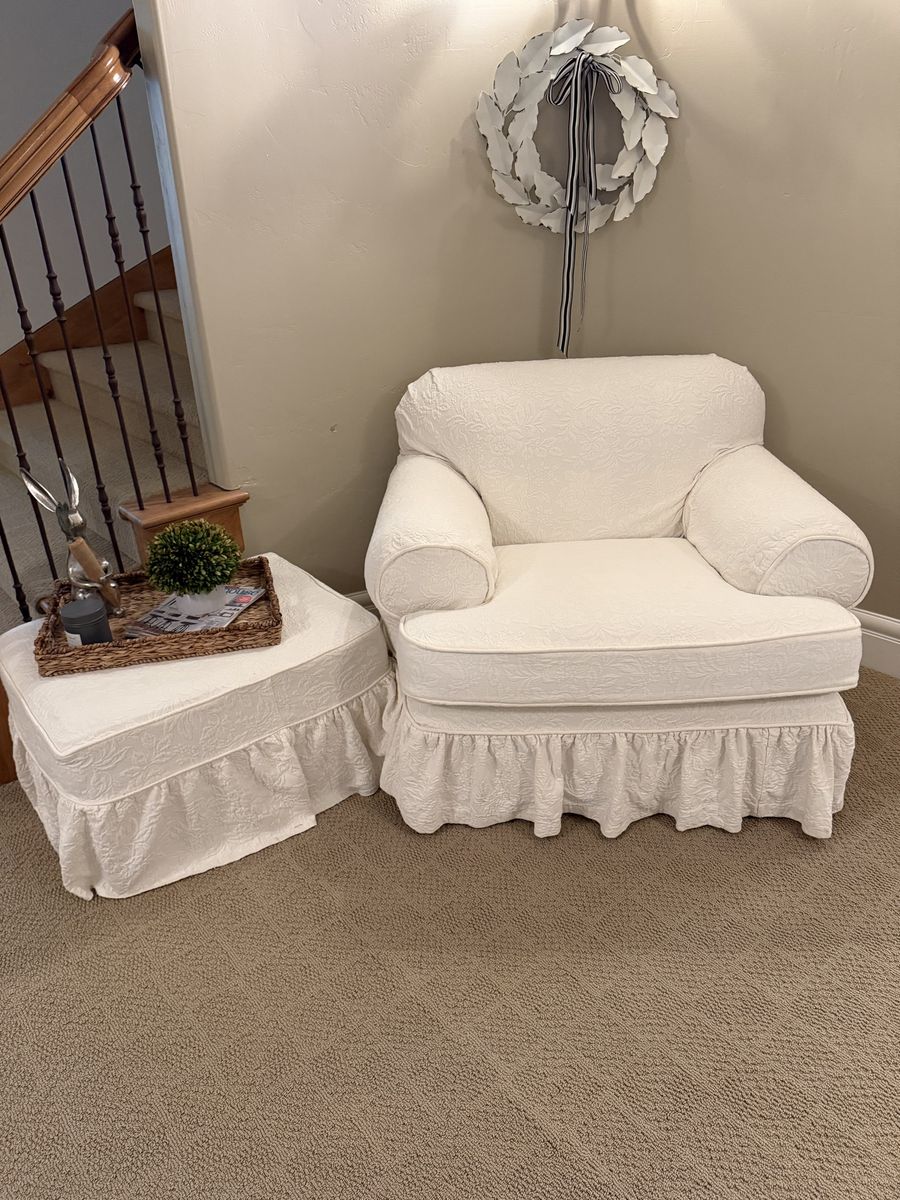 VenmoOver-sized Reading Chair & Ottoman. Washable Slip Covered. Both pieces - $175