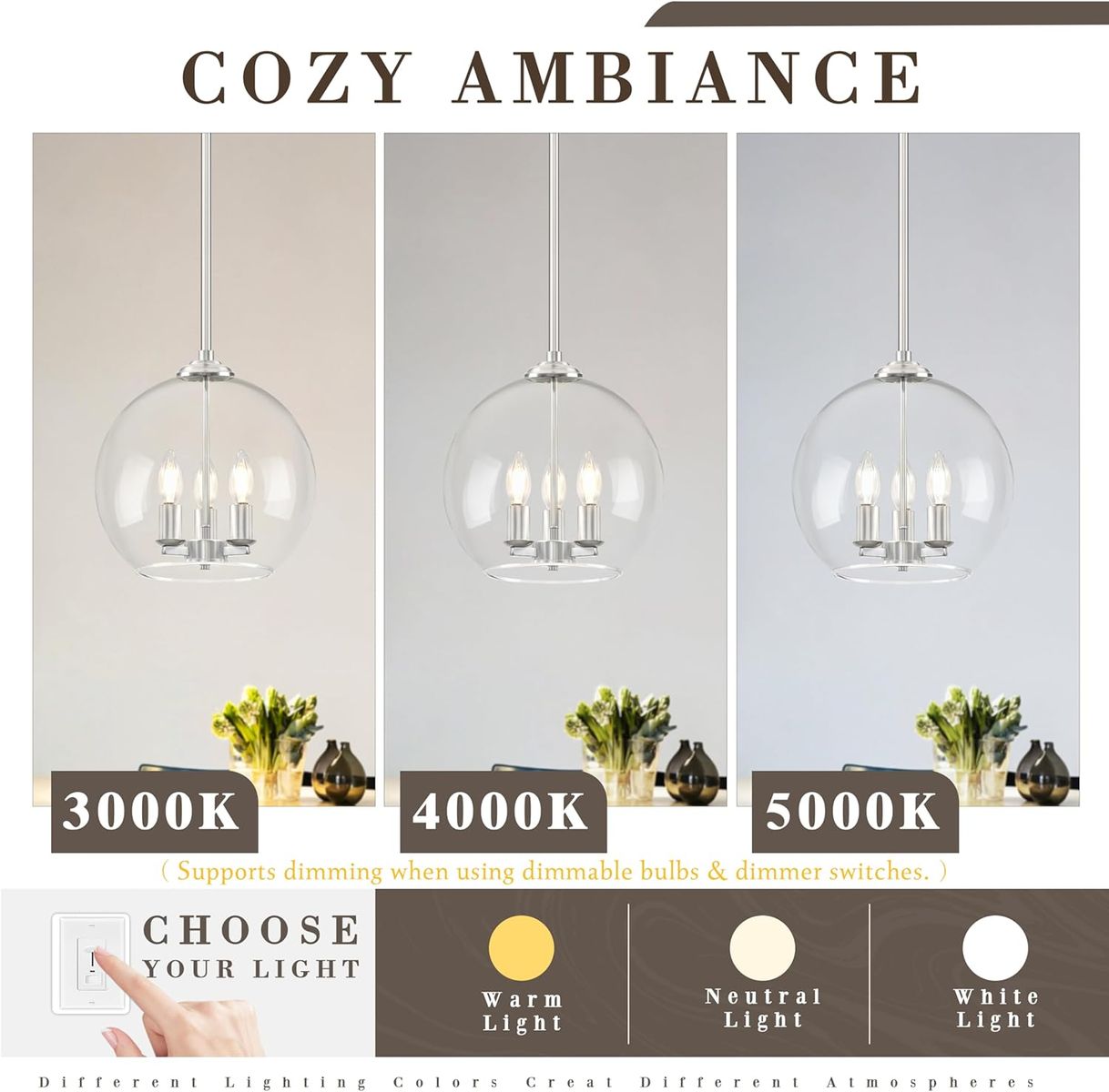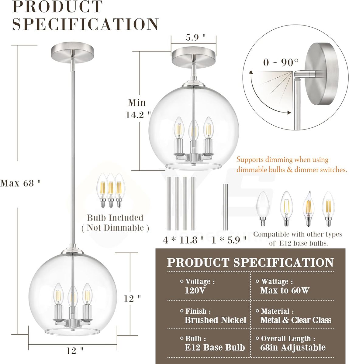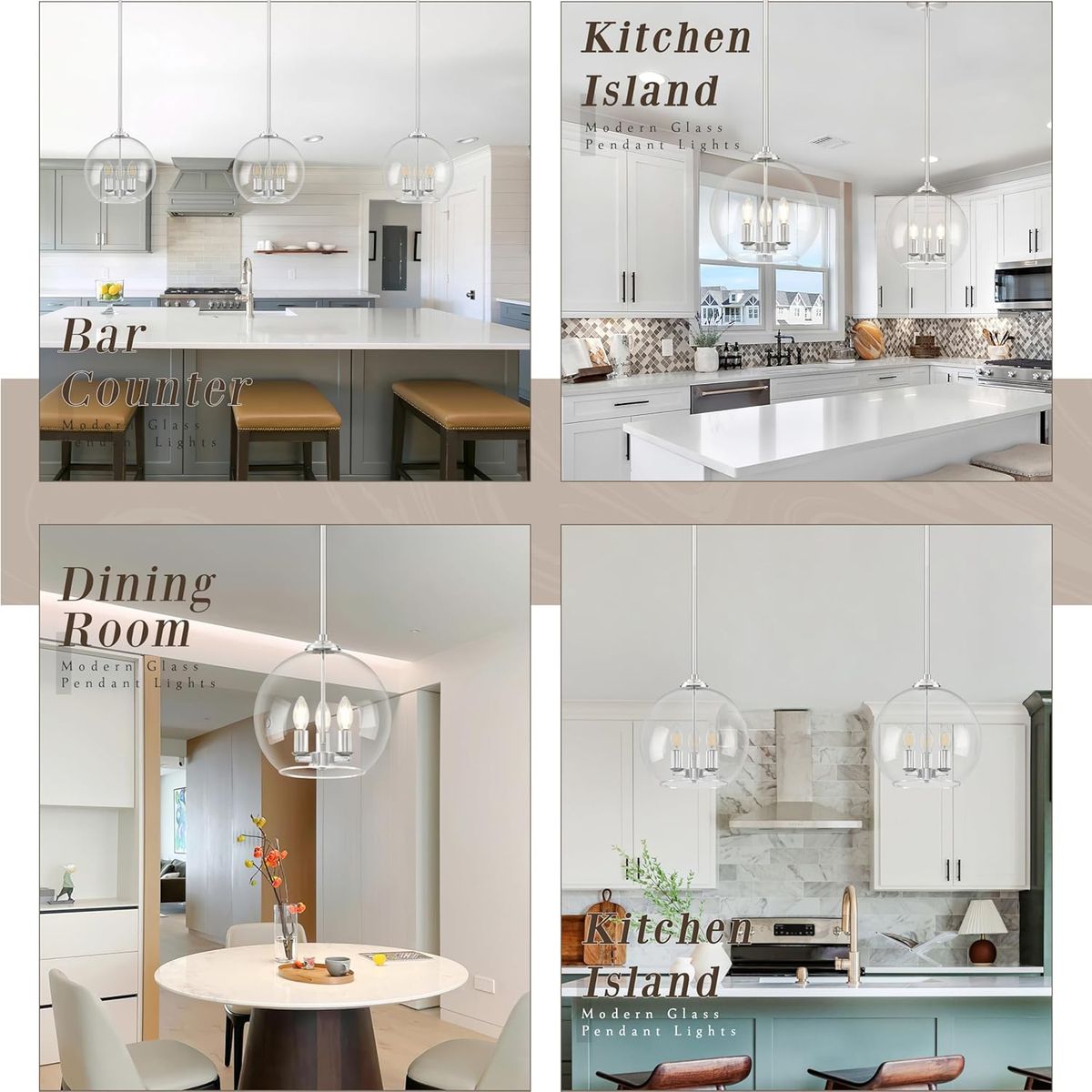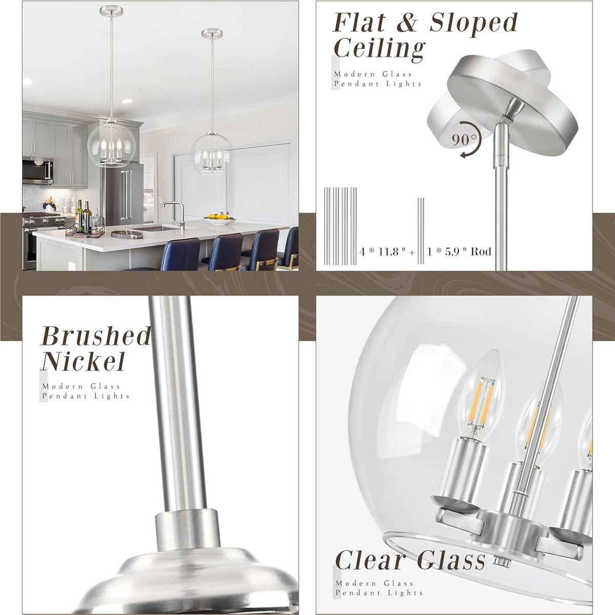About this item - Modern Design & Versatile Use: Featuring a sleek modern design with double-opening clear glass, this clear nickel pendant light serves as an elegant modern chandelier or modern pendant light. Excellently suited for enhancing spaces like the kitchen island (ideal as a globe pendant light kitchen island), dining room, or living area.