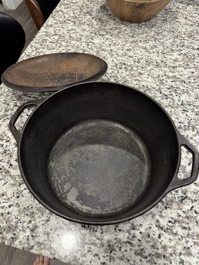 ZelleThis is a used dutch oven left in my apartment when I moved in. It needs a good cleaning. There is some oxidation on the inside of the lid. Buyer must come pick it up from my apartment in downtown Salt Lake City.
