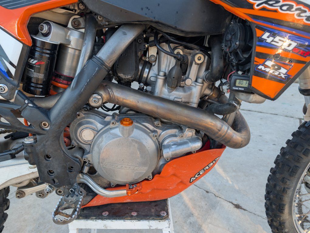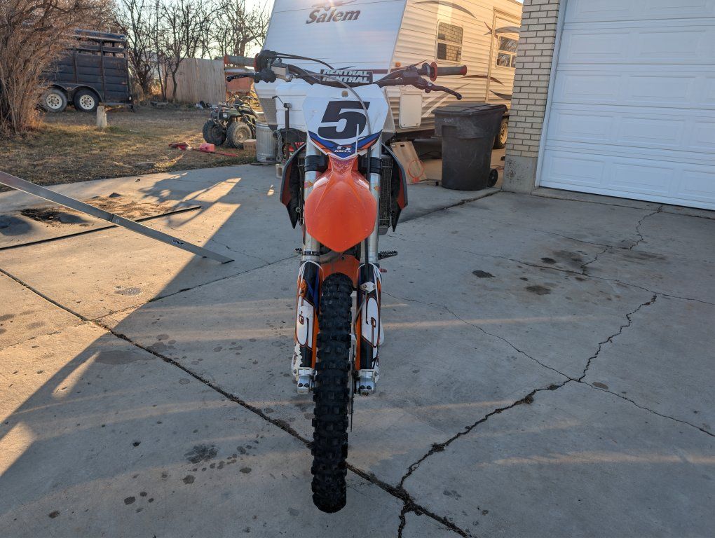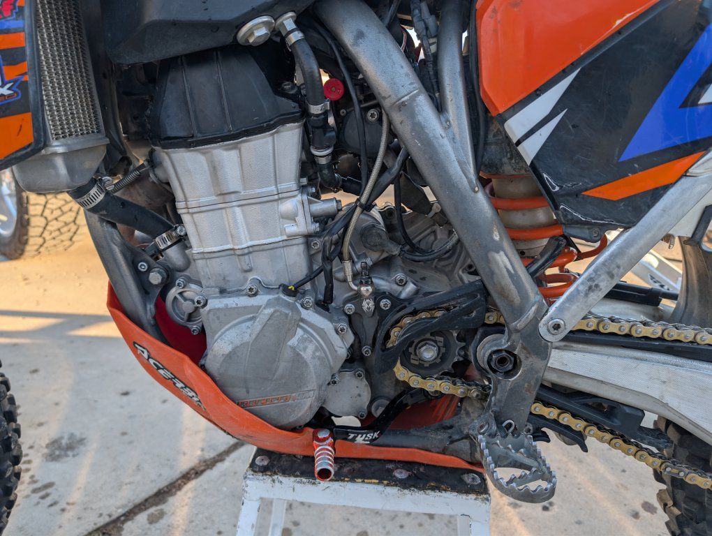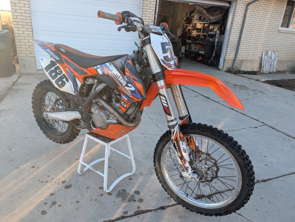 2013 ktm 450. great bike lots of power. engine has about 50-60 hours frame has over 200. all the bearings replaced everything gets greased well air filter cleaned/replaced 6 rides. oil changed every 6 rides. never been to the dunes only trails and some track riding. fresh grips,chain and sprocket,tires,break away levers,lots of little parts.bran new plastics to go with it. suspension is good was redone not to long ago.