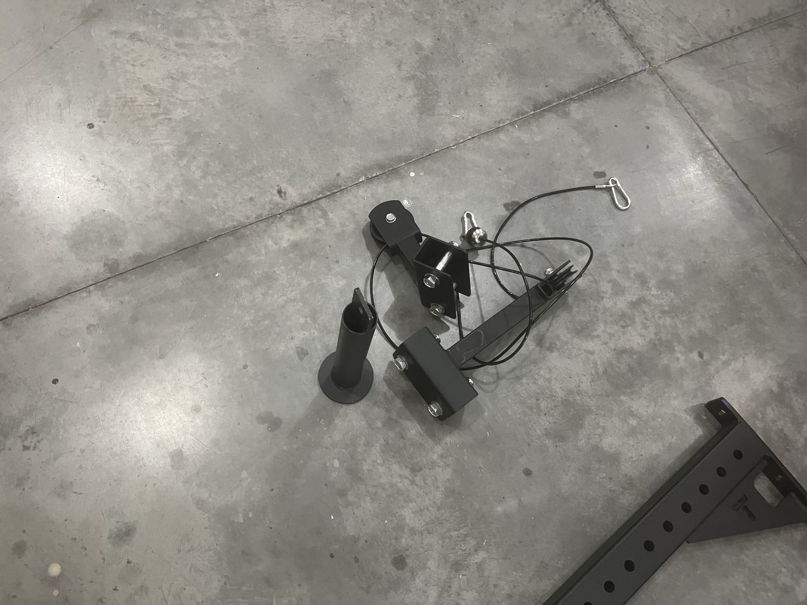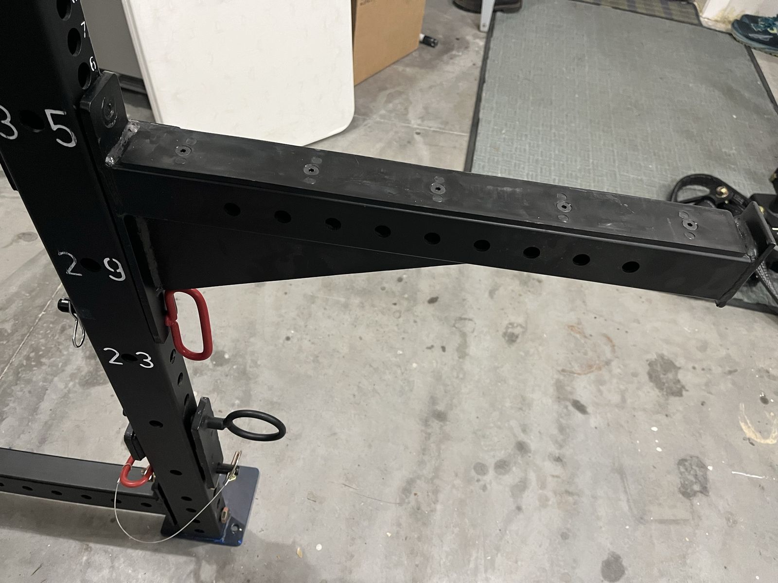 T3 squat rack J cups Spotter arms Pulley system Landmine (can’t find on website) Flip down safety Battle rope attachment Pull up swivels (can’t find on website) Crossmember gusset