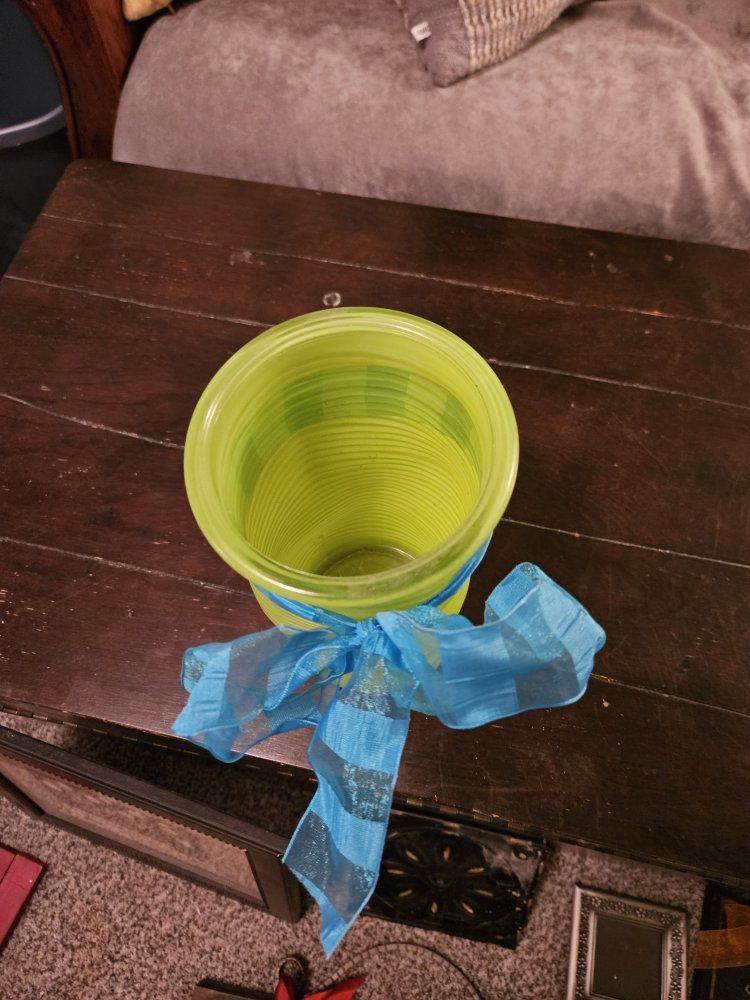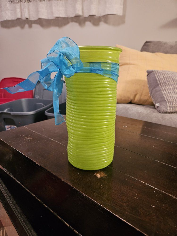 VenmoFluorescent green glass vase. Textured, No damage, from a smoke and pet free home. I'm moving from a house to an apartment. Please see my other listings. Thank you!