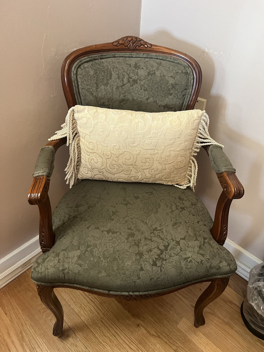 Antique chair. Sturdy and in great condition. Comes with a pillow.