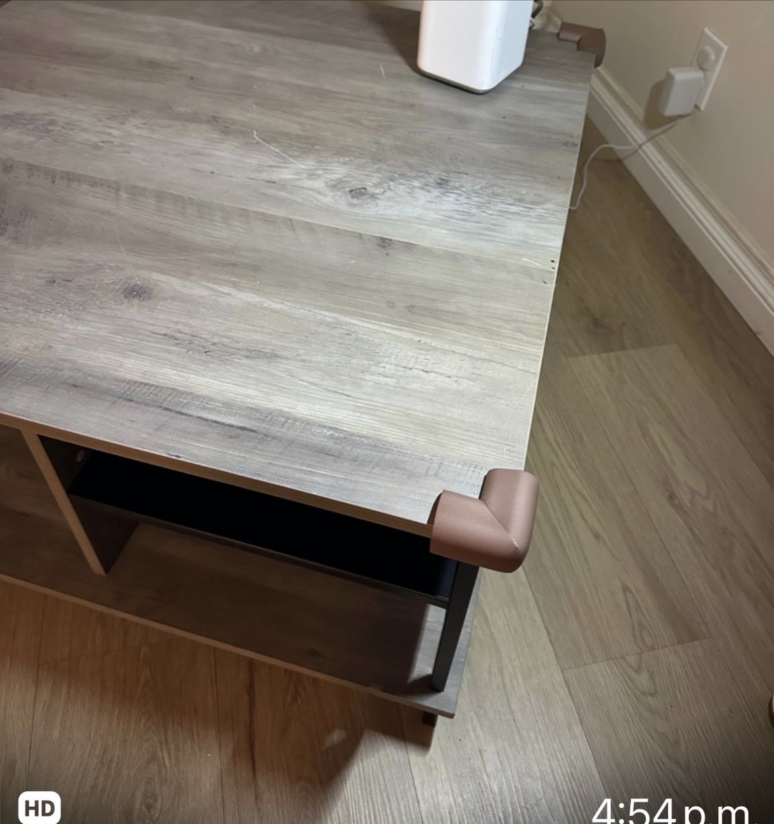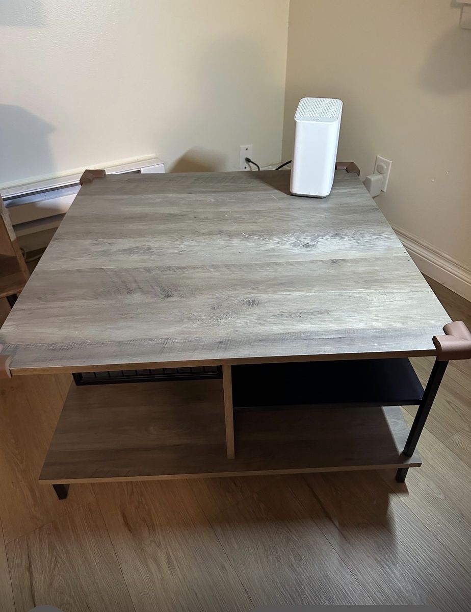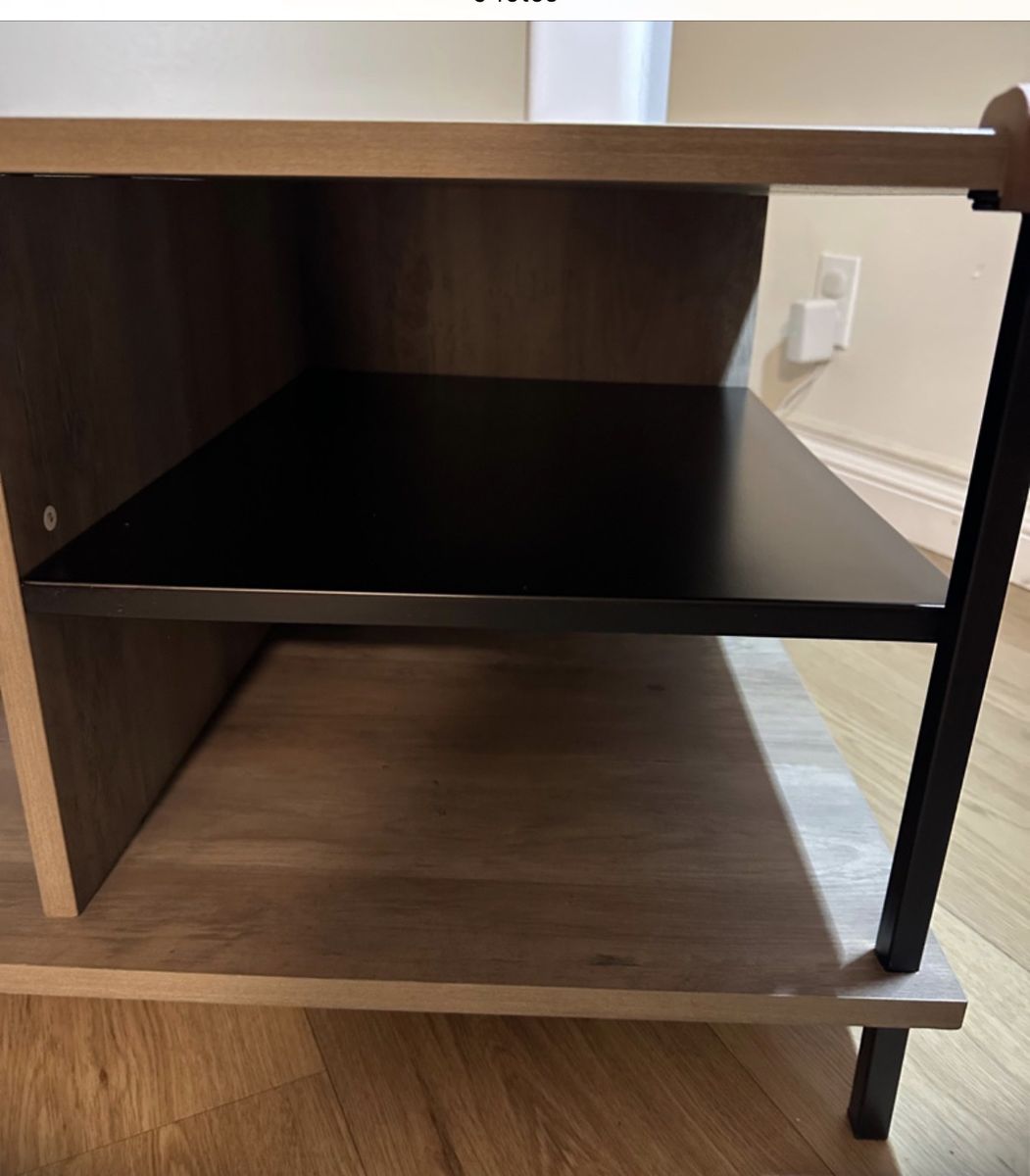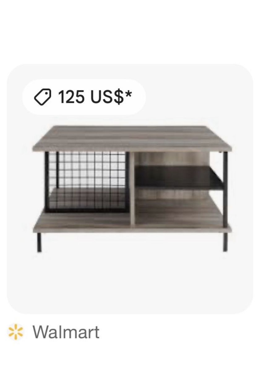 Venmo1 Fixed metal shelf Plastic foot covers on metal legs Open storage Mixed matetial cocktail table The edges of the table have protective rubber tocprevent any accidents “ At walmart they’re selling it new for $125 Mine is used, but in good condition for $ 50