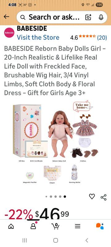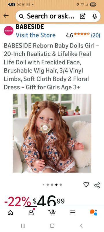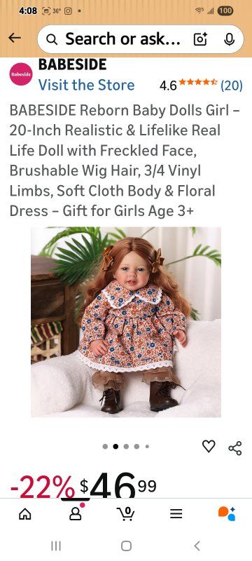 Charming Freckled Face & Blue Eyes – This 20-inch reborn girl doll is designed to resemble a real life newborn, with sparkling blue eyes, a sweet smile, and adorable freckles that give her a lifelike, heartwarming personality. Long Brunette Hair with Wig Cap – Styled with deep brown hair secured by a fixed wig cap, her hair stays neat and allows brushing, braiding, and accessorizing without shedding. Poseable 3/4 Vinyl Limbs – Crafted with high-quality vinyl arms and legs, this realistic doll can sit, hug, and pose naturally, making her perfect for pretend play and photography. Soft Cloth Body for Cuddles – Her huggable cloth torso is lightweight yet durable, designed for children to carry, cuddle, and enjoy a real life play experience all day long. Vintage Floral Outfit with Boots: omes fully dressed in a classic printed dress with lace trim, matching ruffled socks, and brown lace-up boots—ready for any occasion.